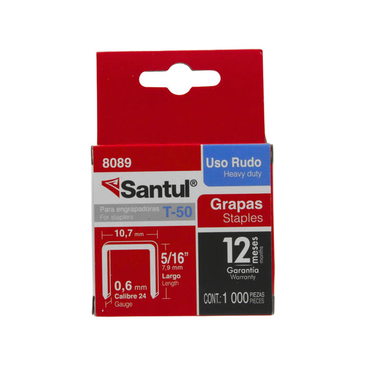 Grapa para engrapadora T-50 5/16" (8 mm) 1000 piezas Santul 8089