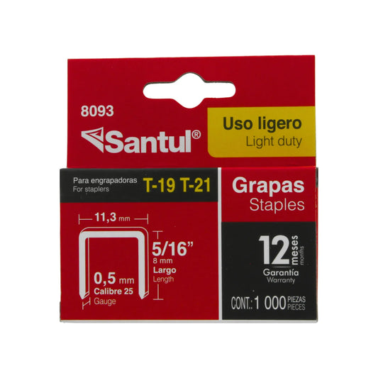 Grapa para engrapadora T-21 5/16" (8 mm) 1000 piezas Santul 8093