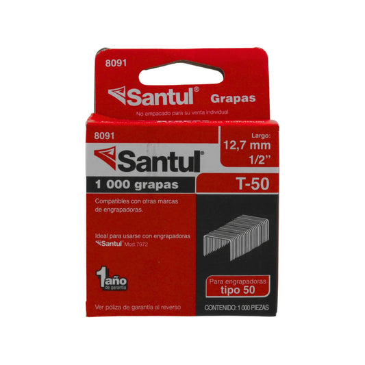 Grapa para engrapadora T-50 1/2" (13mm) 1000 piezas Santul 8091
