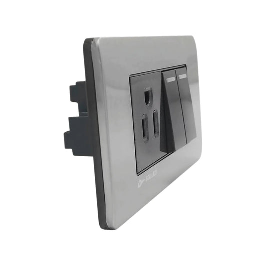 Placa 2 apagadores/1 contacto gris cromo Solaris AL622GR-ES
