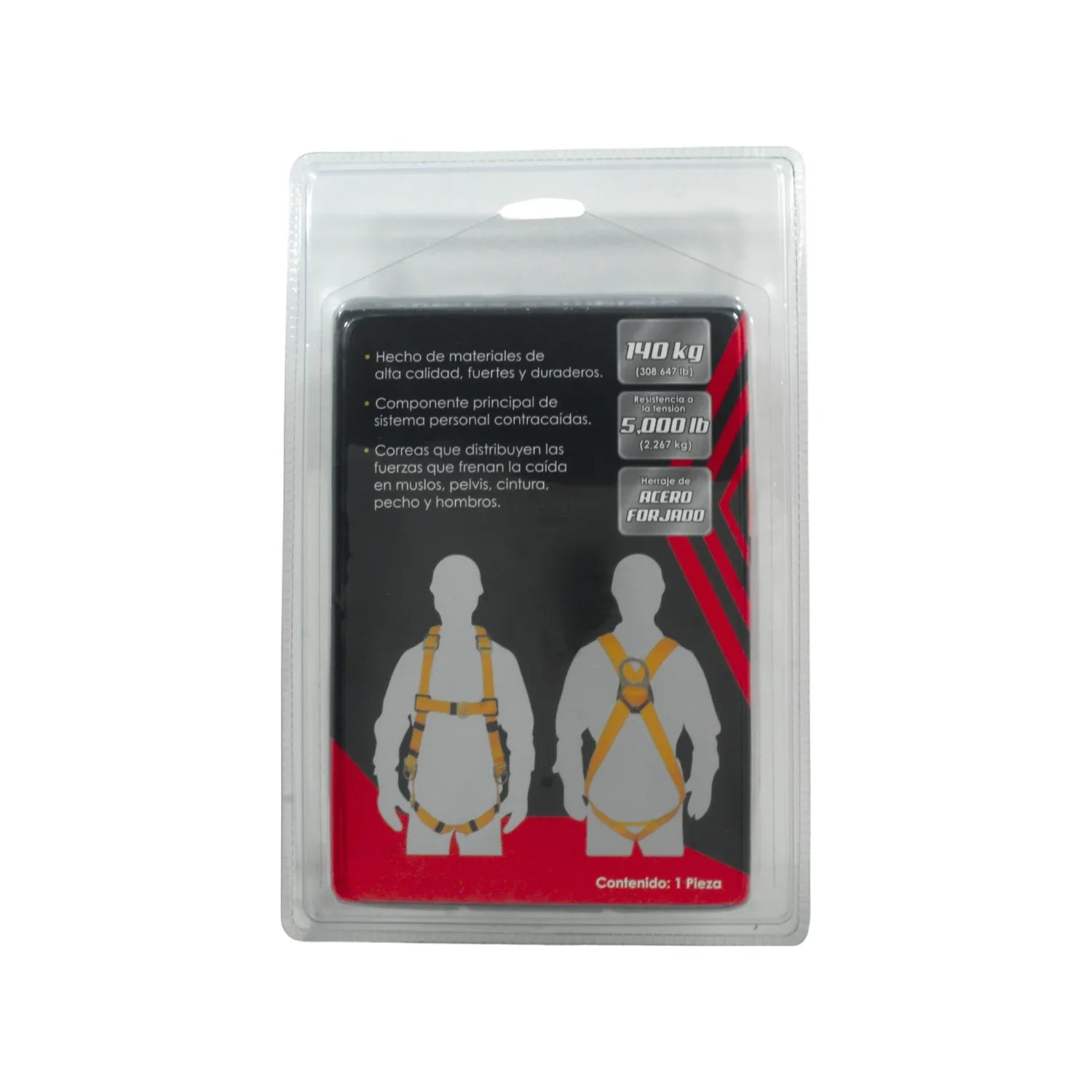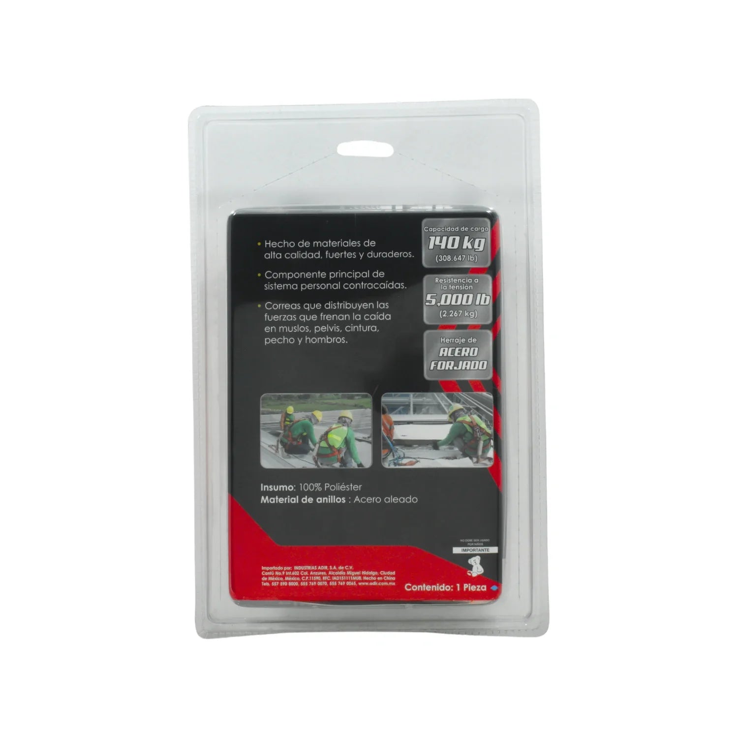 Marca: Adir Modelo: 528 Cinta: 100 % poliéster de alta tenacidad, ancho 40 mm (o 44 mm según fuente) Anillos: Cinco, fabricados en acero aleado/forjado Capacidad de carga: 140 kg (308.647 lb) Resistencia a tensión: 2 267 kg (5 000 lb) Aplicación: Industria en general y construcción Distribución de fuerzas de caída: muslos, pelvis, cintura, pecho y hombros