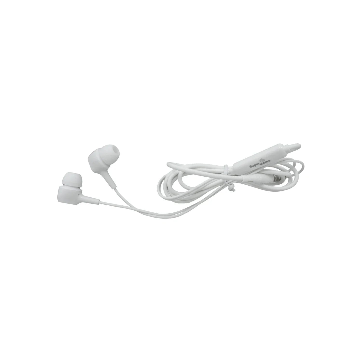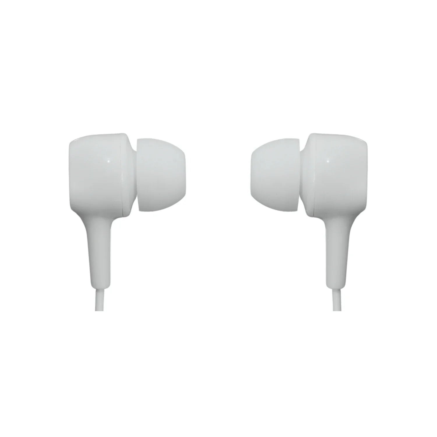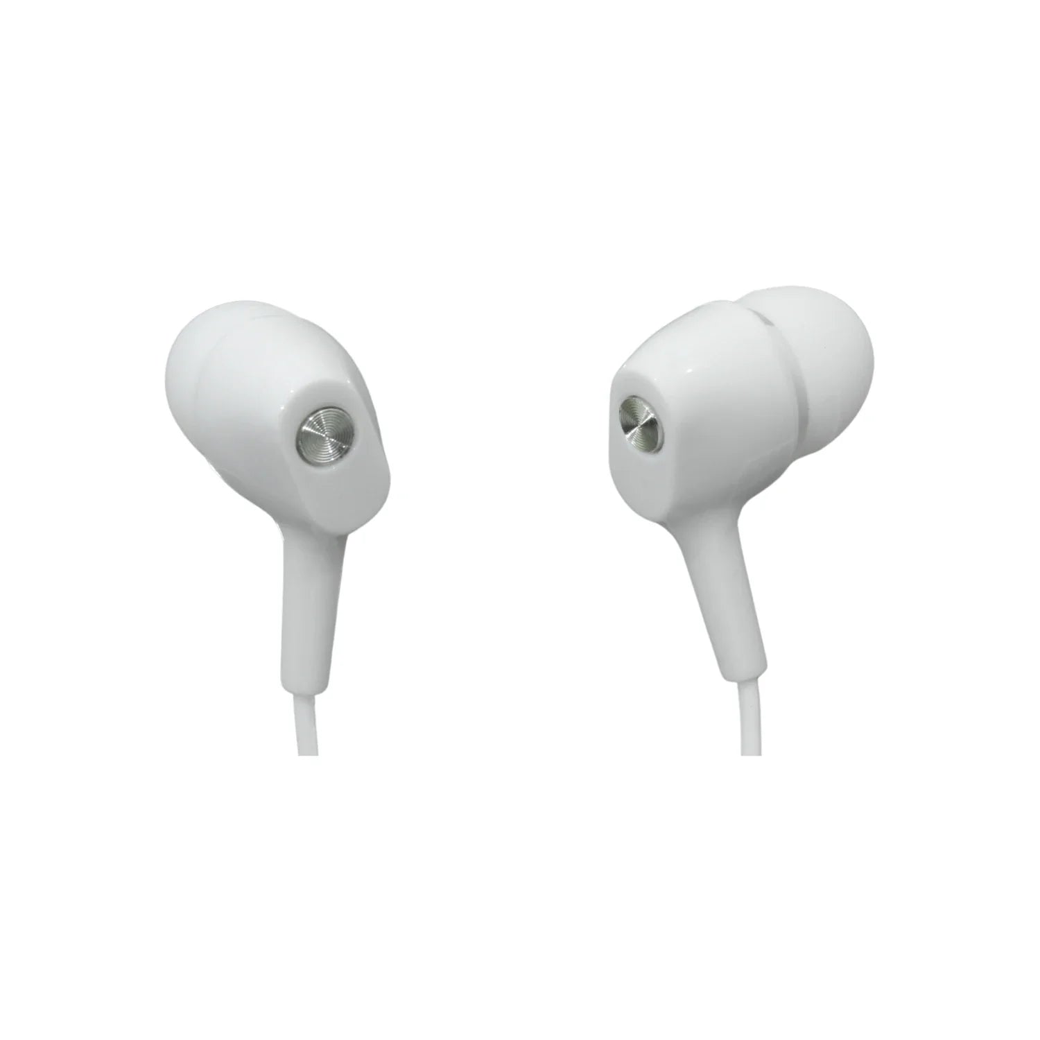 Audífonos manos libres color blanco con micrófono integrado y audio claro, controles prácticos y ajuste cómodo para hablar y moverte con libertad.