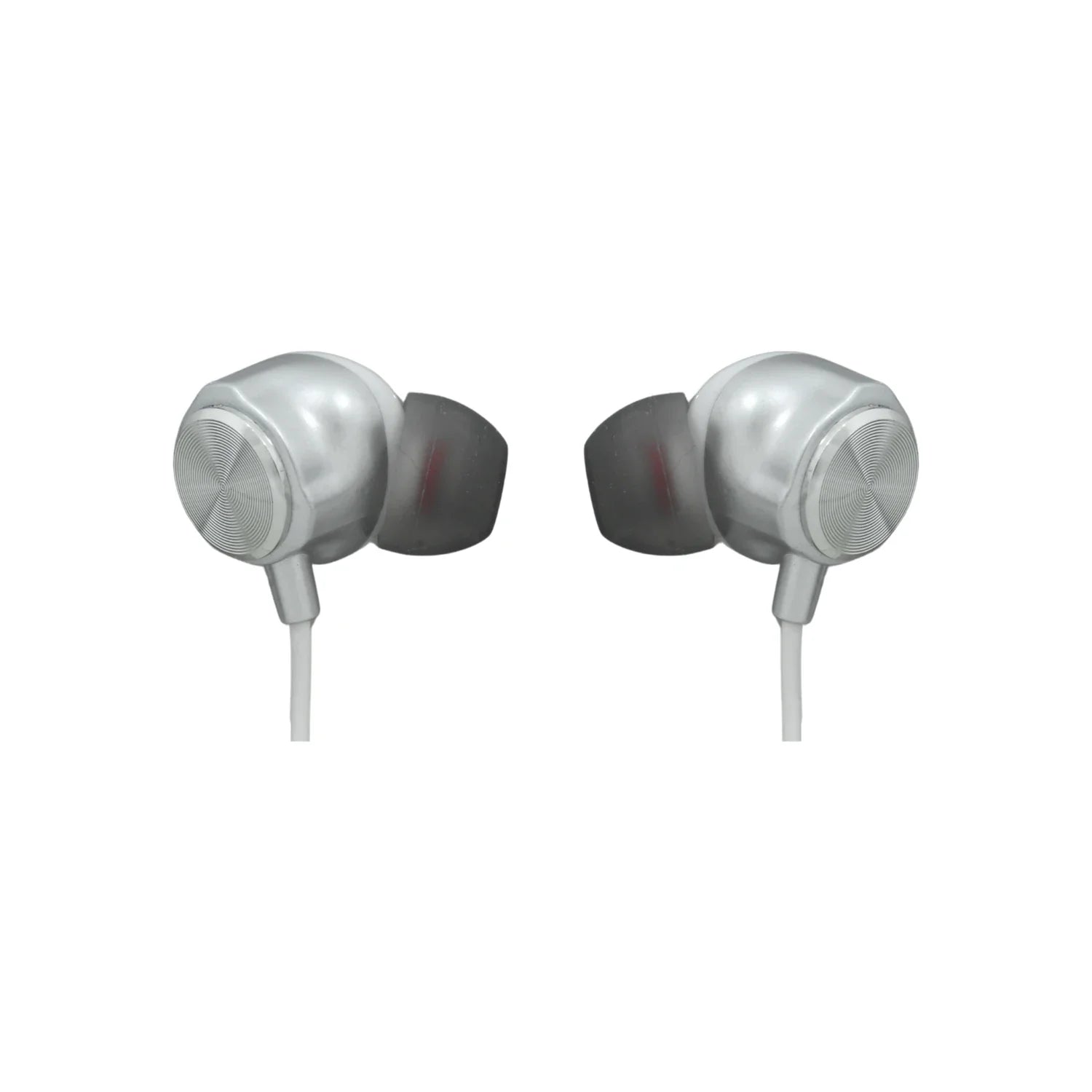 Audífonos manos libres color gris con micrófono integrado y audio claro, controles prácticos y ajuste cómodo para hablar y moverte con libertad.