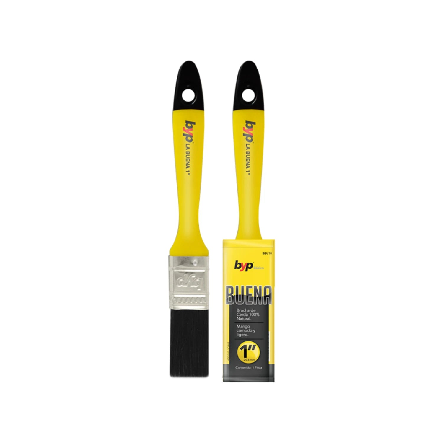 Brocha BYP resistente y versátil, ideal para aplicar pintura en paredes y madera. Sus cerdas firmes permiten una cobertura uniforme y acabados limpio
