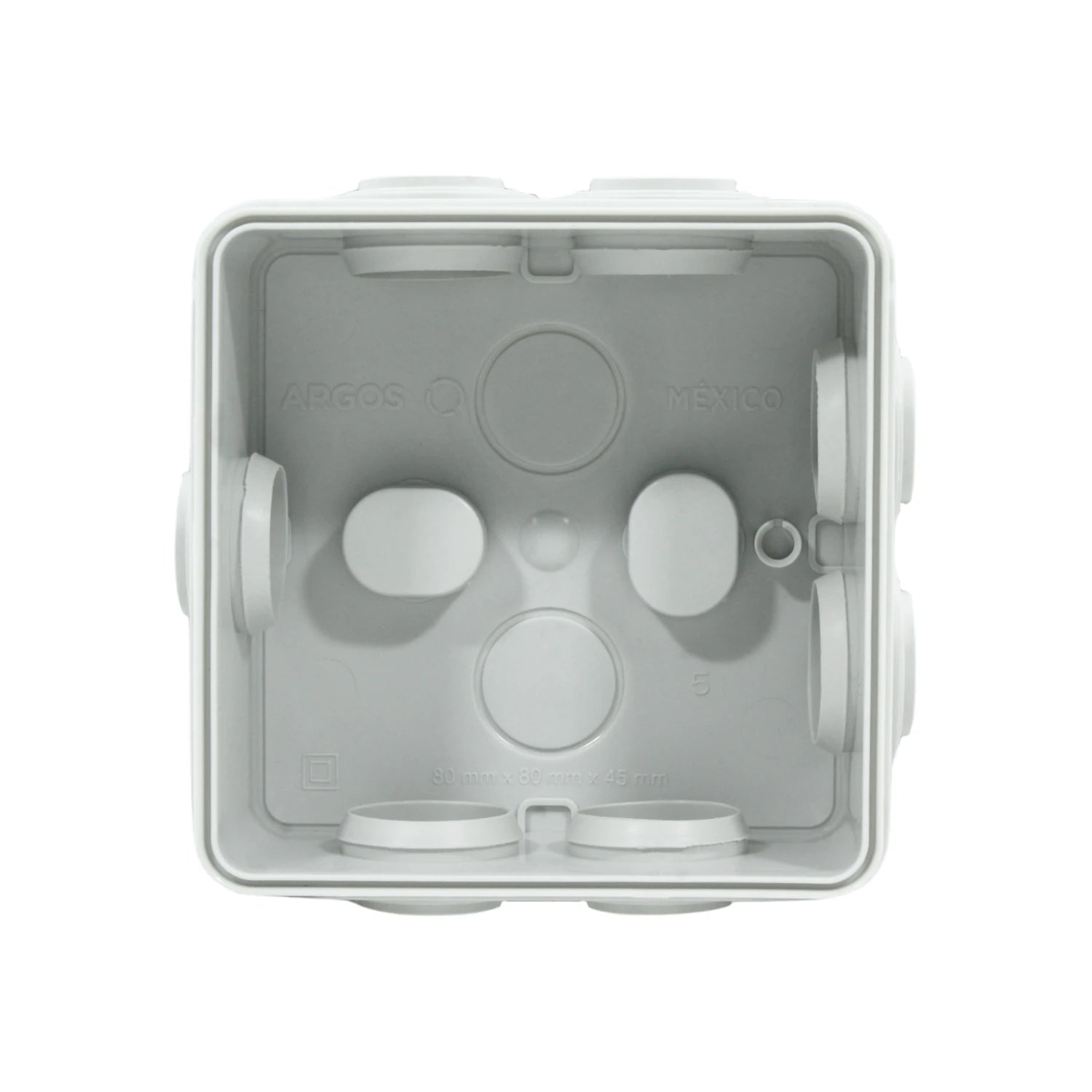 La caja estanca Argos modelo CE808045CH está diseñada para proteger circuitos eléctricos contra la infiltración de agua y polvo. Fabricada en termoplástico resistente, no propaga fuego ni se oxida. Es ideal para derivaciones de cables en instalaciones interiores o exteriores y cuenta con conos de presión para fijación rápida. Brinda un amplio espacio para cableado y una instalación sencilla.