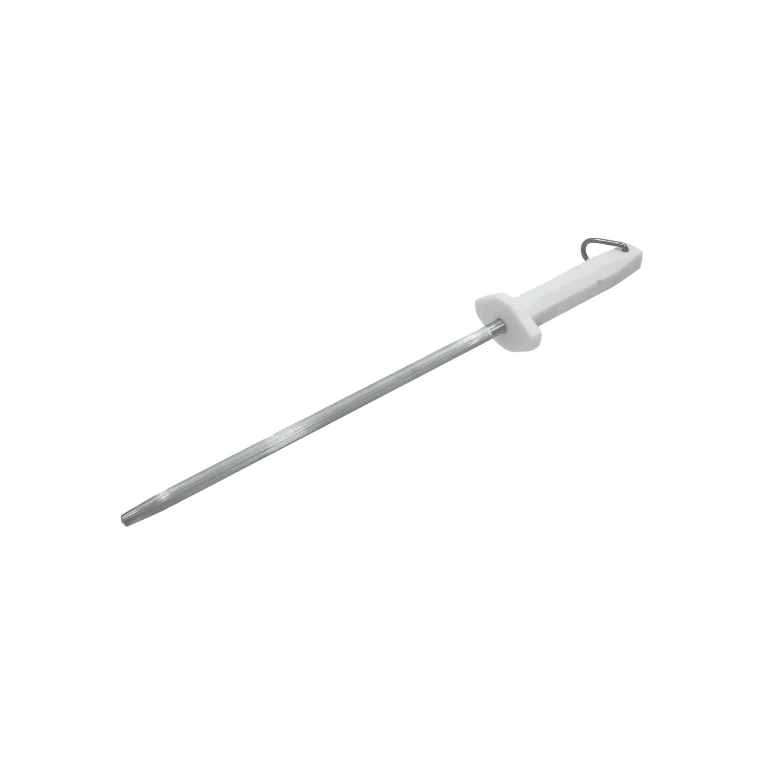 Chaira profesional diseñada para mantener el filo perfecto de tus cuchillos. Su barra de acero inoxidable permite asentar y afilar la hoja de manera efectiva, prolongando la vida útil de tus herramientas de corte. Esencial para cocinas profesionales y hogares que buscan mantener sus cuchillos siempre listos para un corte preciso.