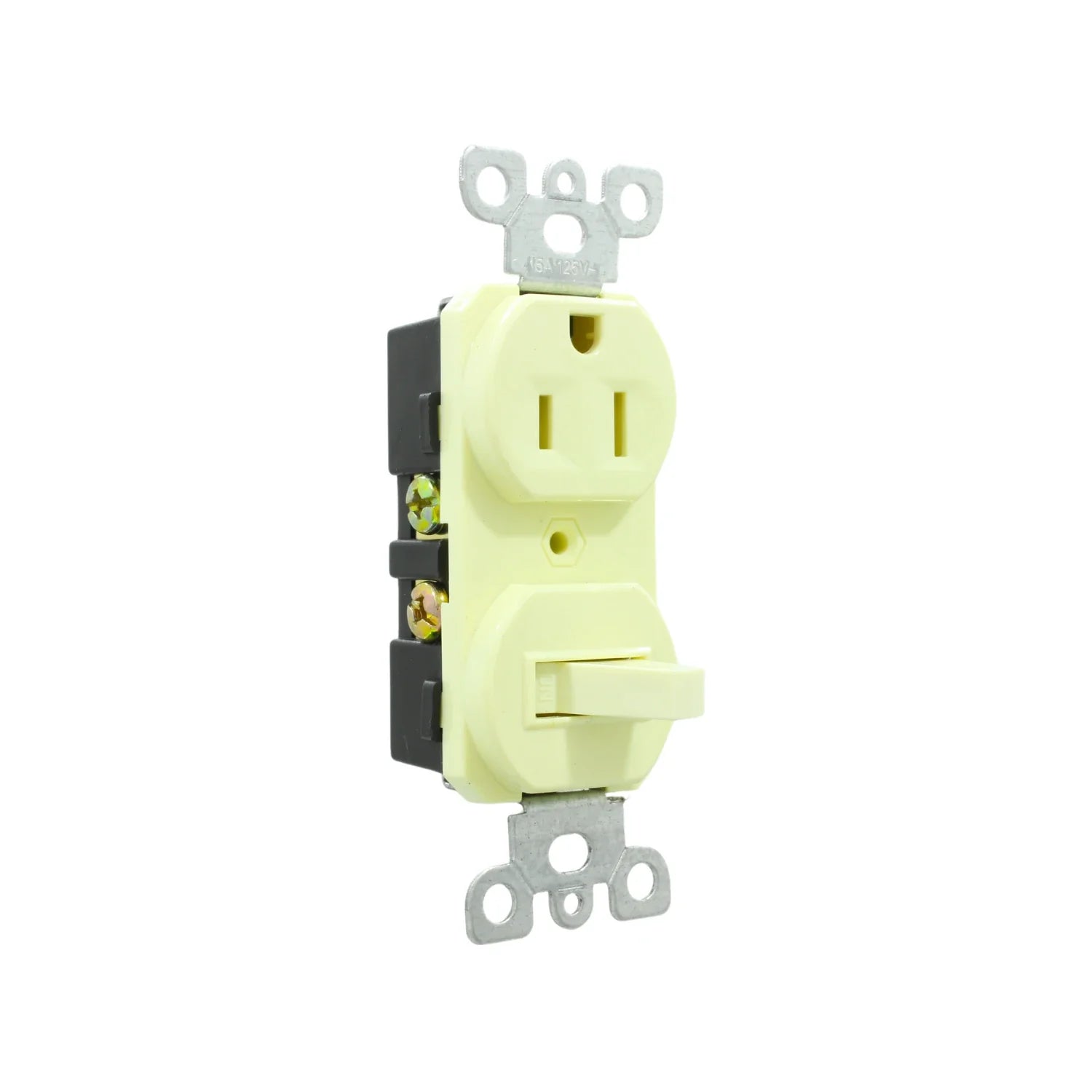 Apagador con contacto aterrizado. Ideal para instalaciones eléctricas, residenciales y comerciales. Fabricado en ABS color marfil. Contacto aterrizado para mayor seguridad.