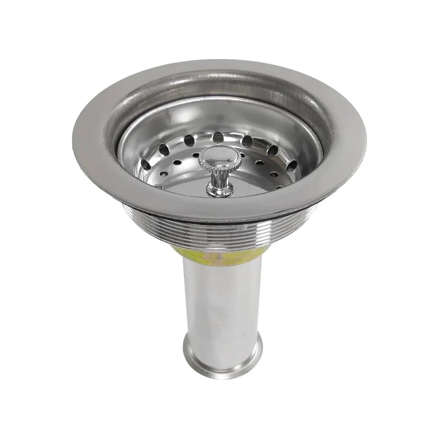 Contra canasta para tarja con tubo. Fabricada en acero inoxidable, ideal para evitar obstrucciones en el drenaje del fregadero. Fácil de instalar y compatible con tarjas estándar.