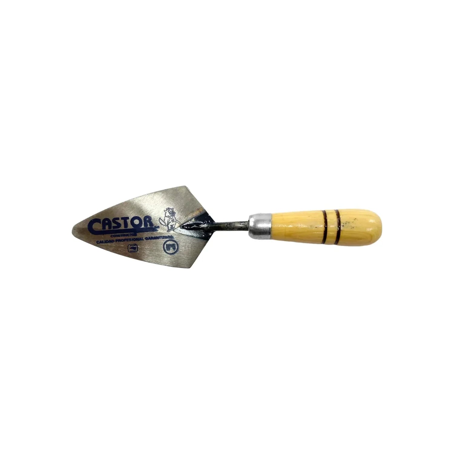 La cuchara Castor tipo Filadelfia de 5" está diseñada para trabajos de albañilería. Su hoja triangular metálica y mango de madera ofrecen precisión, comodidad y resistencia