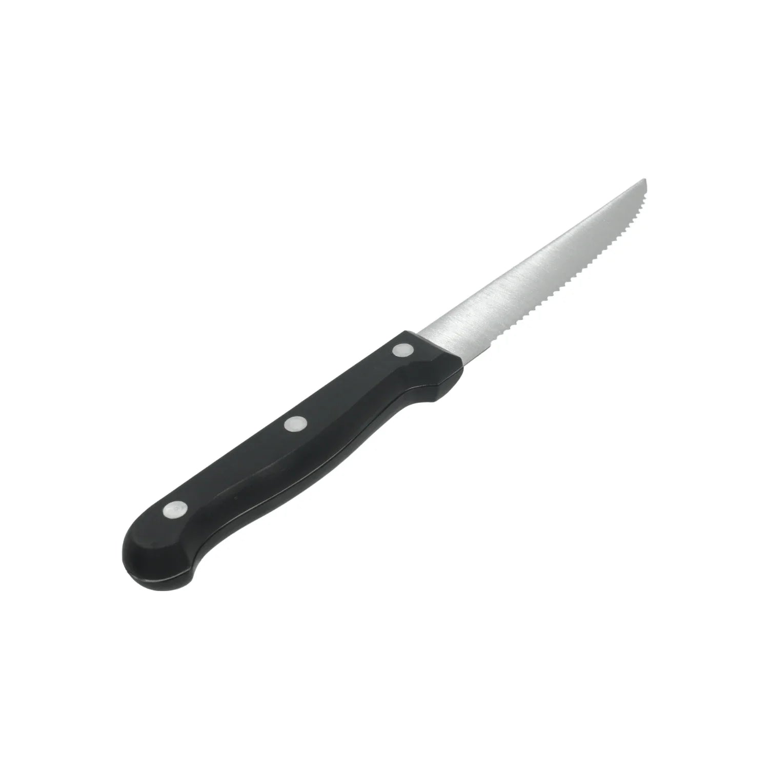 El cuchillo Mark's Knife de sierra de 5" está diseñado para cortes precisos en carnes y alimentos. Su hoja dentada de acero inoxidable y mango de plástico ofrecen durabilidad, control y comodidad en cada uso.