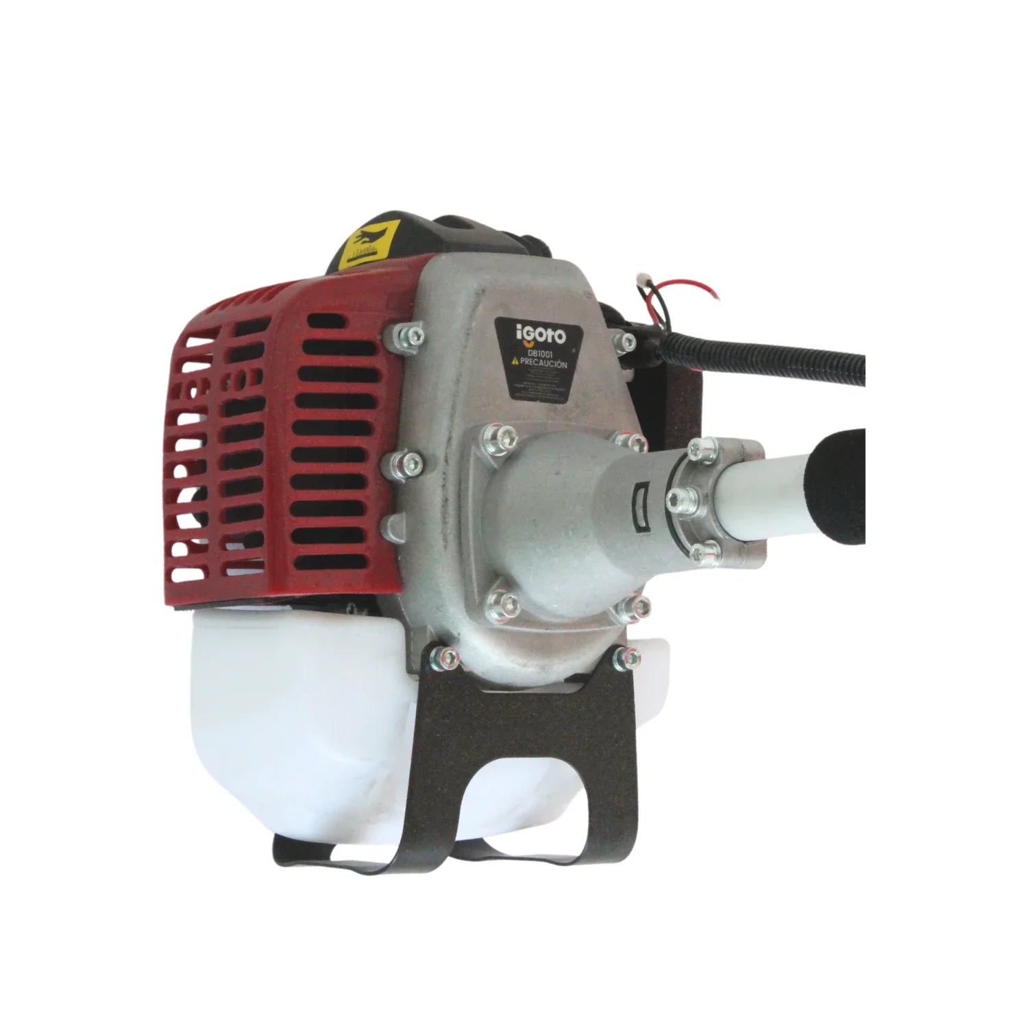 Desbrozadora recta Igoto DB1001 con motor de 2 tiempos, 26 CC y 1 HP. Ideal para cortes precisos en jardinería. Diseño ergonómico con mango tipo bicicleta y accesorios incluidos para múltiples aplicaciones.