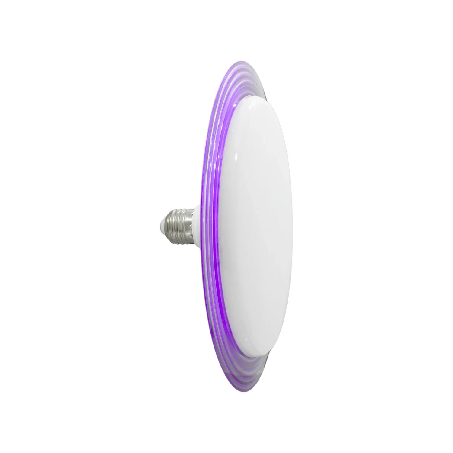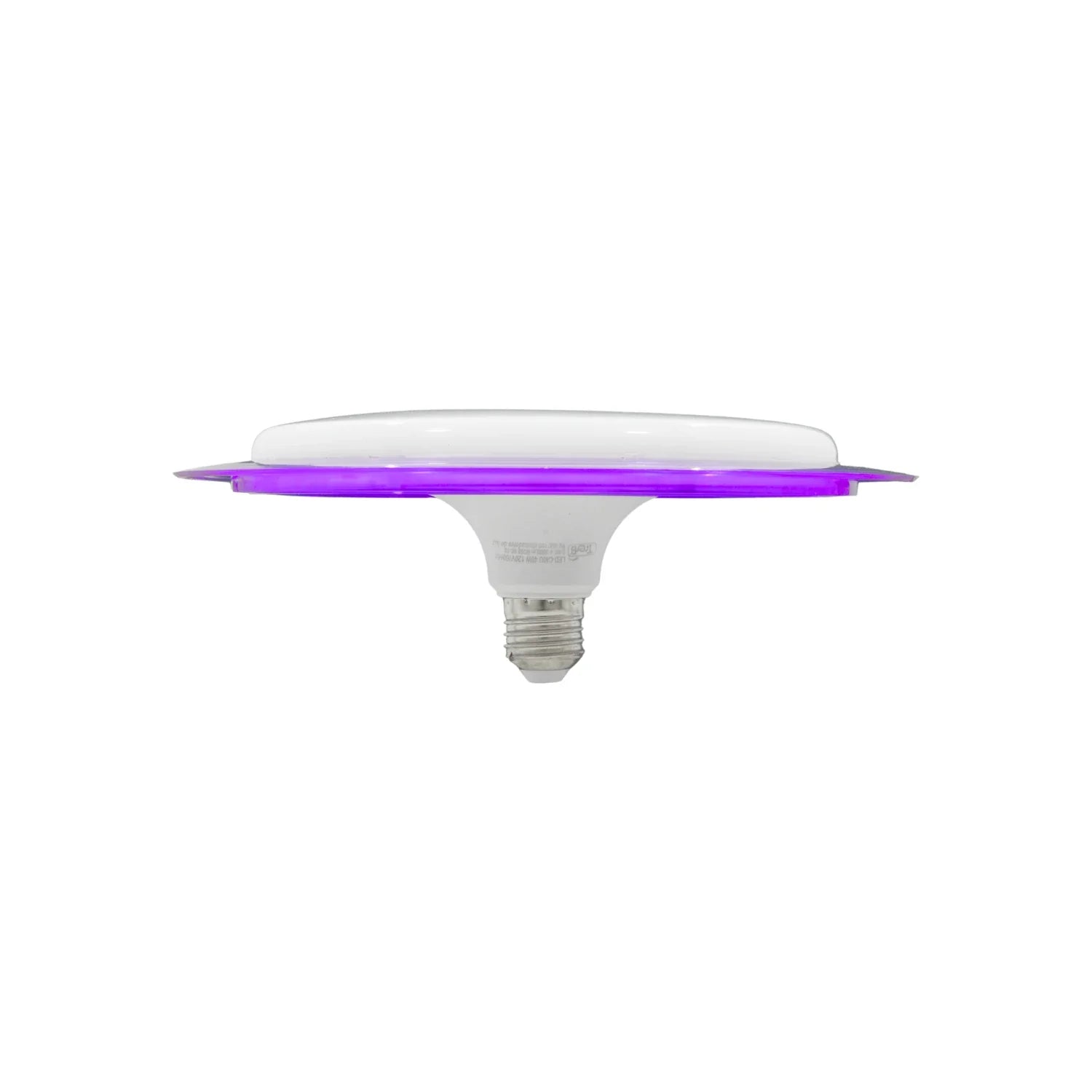 La lámpara Magaña LED-C40U tipo Ovni de 40 W ofrece iluminación omnidireccional con luz blanca fría de 6,500 K. Su diseño compacto y base E27 permite instalación directa en socket convencional. Con 3,600 lúmenes y 90 lm/W de eficacia, es ideal para interiores que requieren luz uniforme y potente.