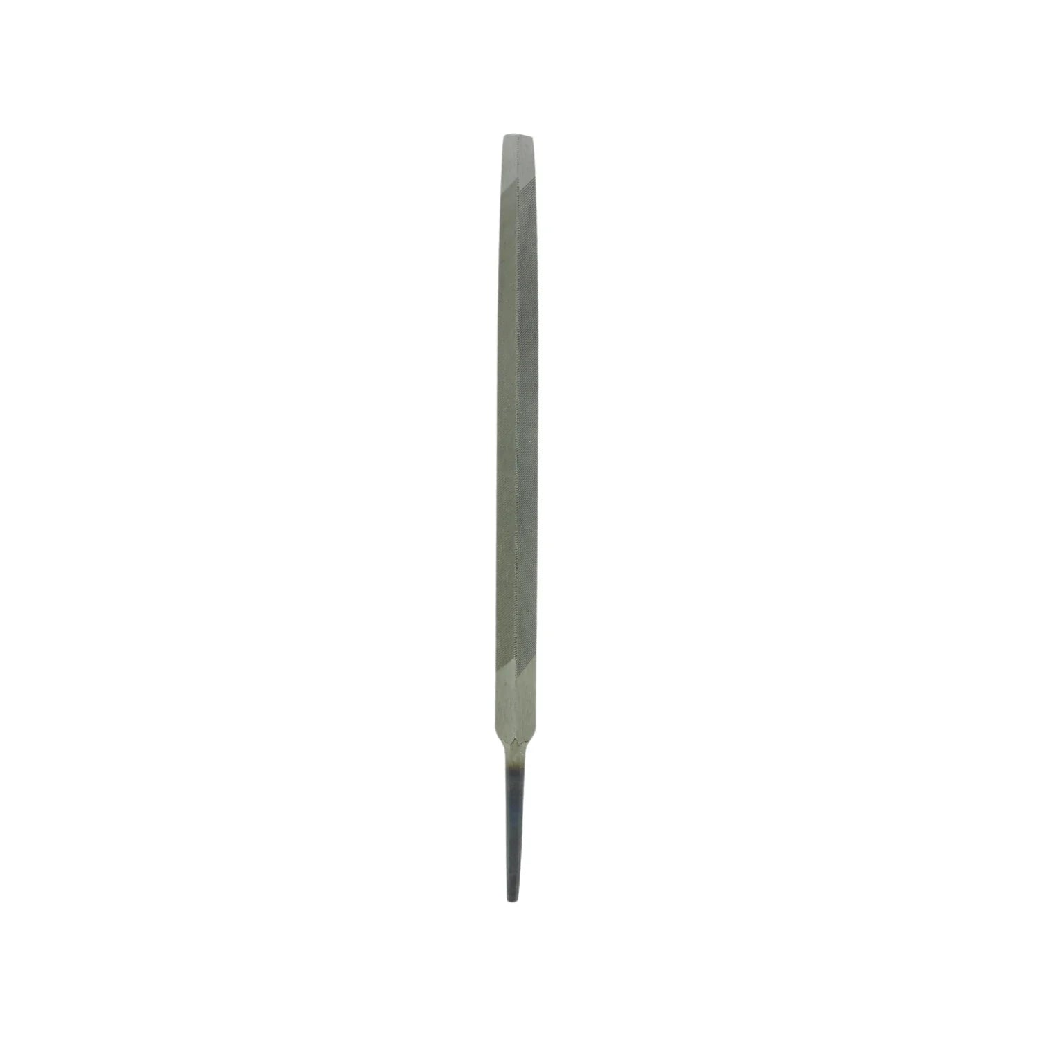 Lima triangular Santul modelo 8663 tipo bastarda de 7", diseñada para afilar sierras, machetes y herramientas agrícolas. Fabricada en acero al carbón con tratamiento térmico y corte bastardo en sus tres caras. Ideal para desbaste de ángulos internos, bordes y superficies planas.