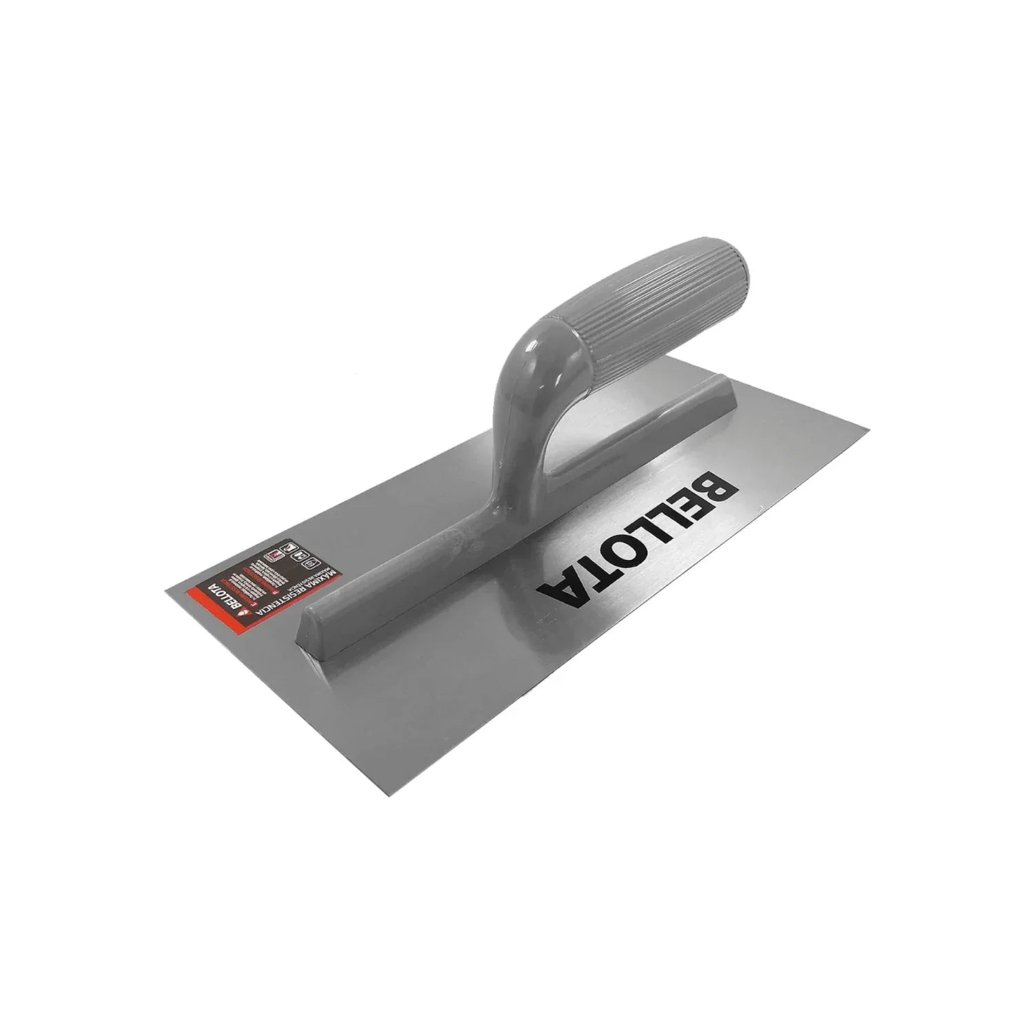 Llana lisa Bellota 750867 con hoja rectangular de acero alto carbono tratada térmicamente. Mango ergonómico de plástico ABS, fijado con remaches para evitar giro. Ideal para alisar mezclas en muros y pisos. Acabado profesional con tratamiento antioxidante.