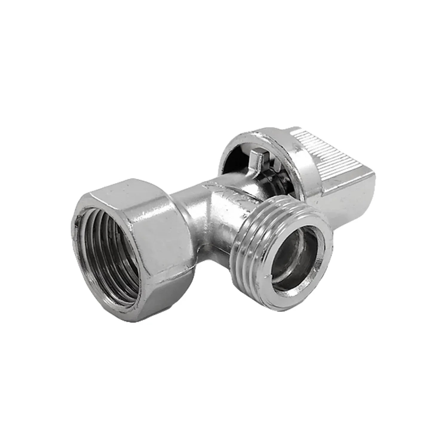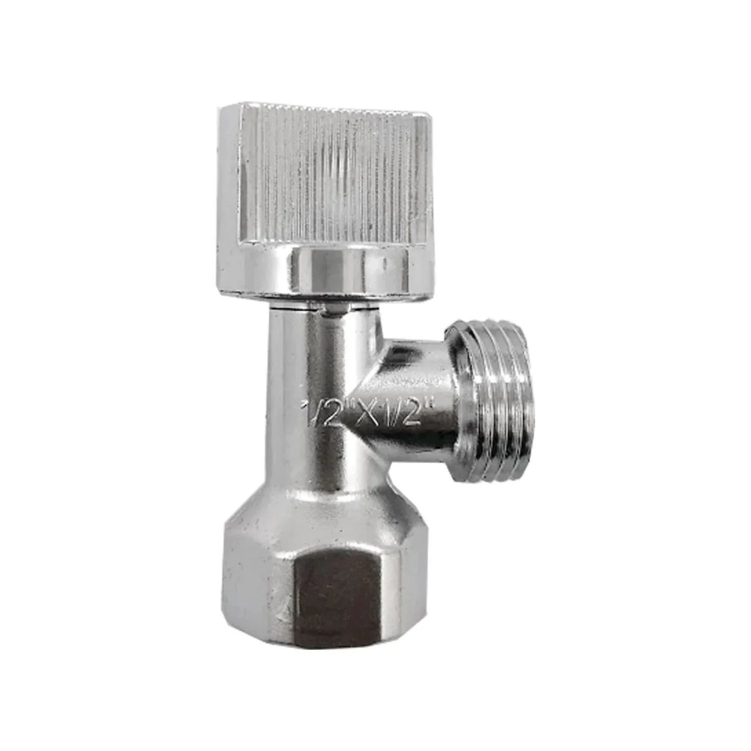 Llave angular Magaña P-LL21211/4 de 1/2" x 1/2", metálica roscable con cierre de 1/4 de vuelta. Fabricada en latón cromado, con maneral de ABS. Ideal para instalaciones de agua fría o caliente en lavabos, fregaderos y sanitarios. Alta durabilidad y fácil operación.