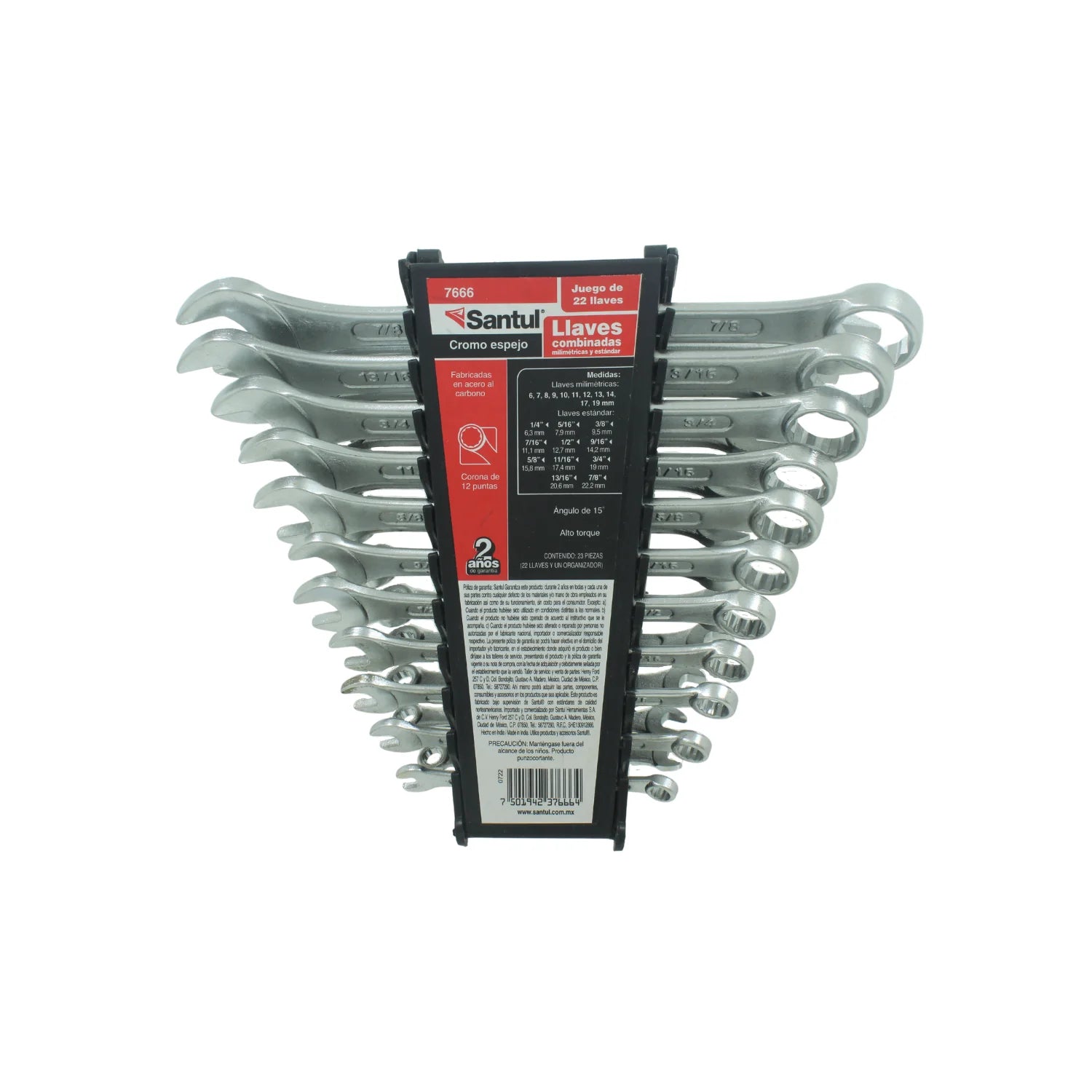 Llaves mixtas juego de 22 piezas estándar/milimétricas Santul 7666