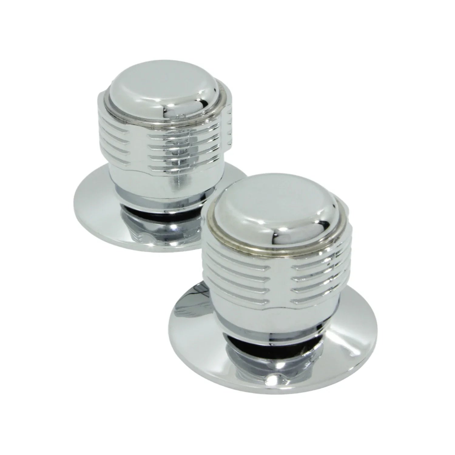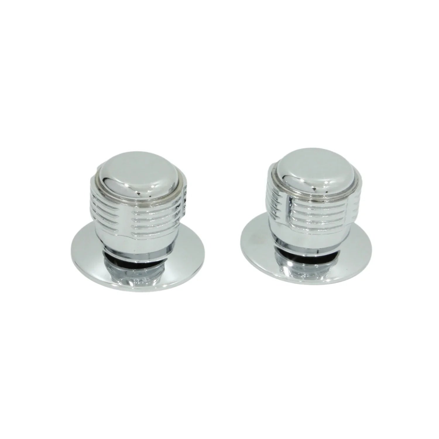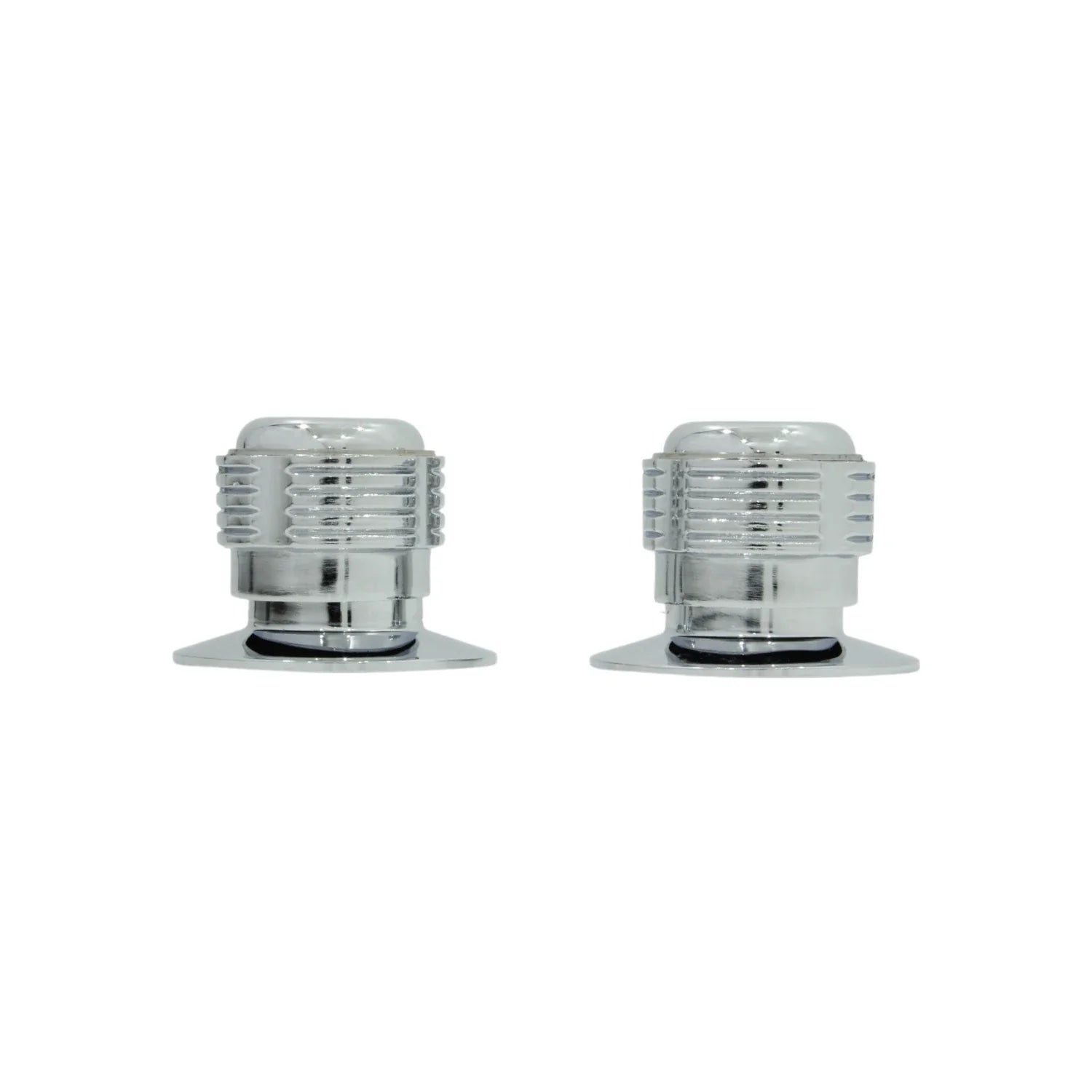 Juego de manerales Metalflu 14395 Ares para regadera, fabricados en latón cromado. Diseño ergonómico tipo Ares grande, con estriado universal de 12 dientes. Incluyen chapetones metálicos. Compatibles con válvulas estándar de ½". Alta resistencia al uso continuo. Ideal para baños residenciales y comerciales.