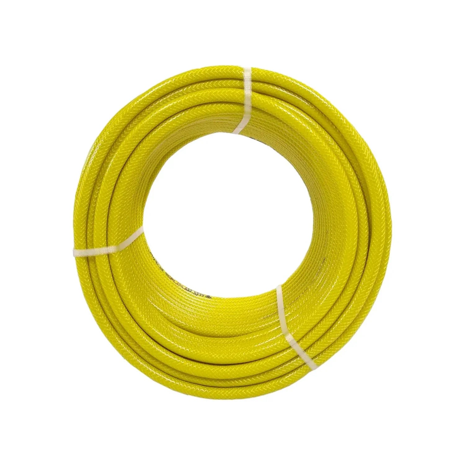 Manguera Arda CD4002 tramada, color amarillo, diámetro de 3/8", rollo de 50 m. Fabricada en PVC flexible con refuerzo de hilo poliéster. Alta resistencia a presión, ideal para conducción de gas, aire y fluidos industriales.