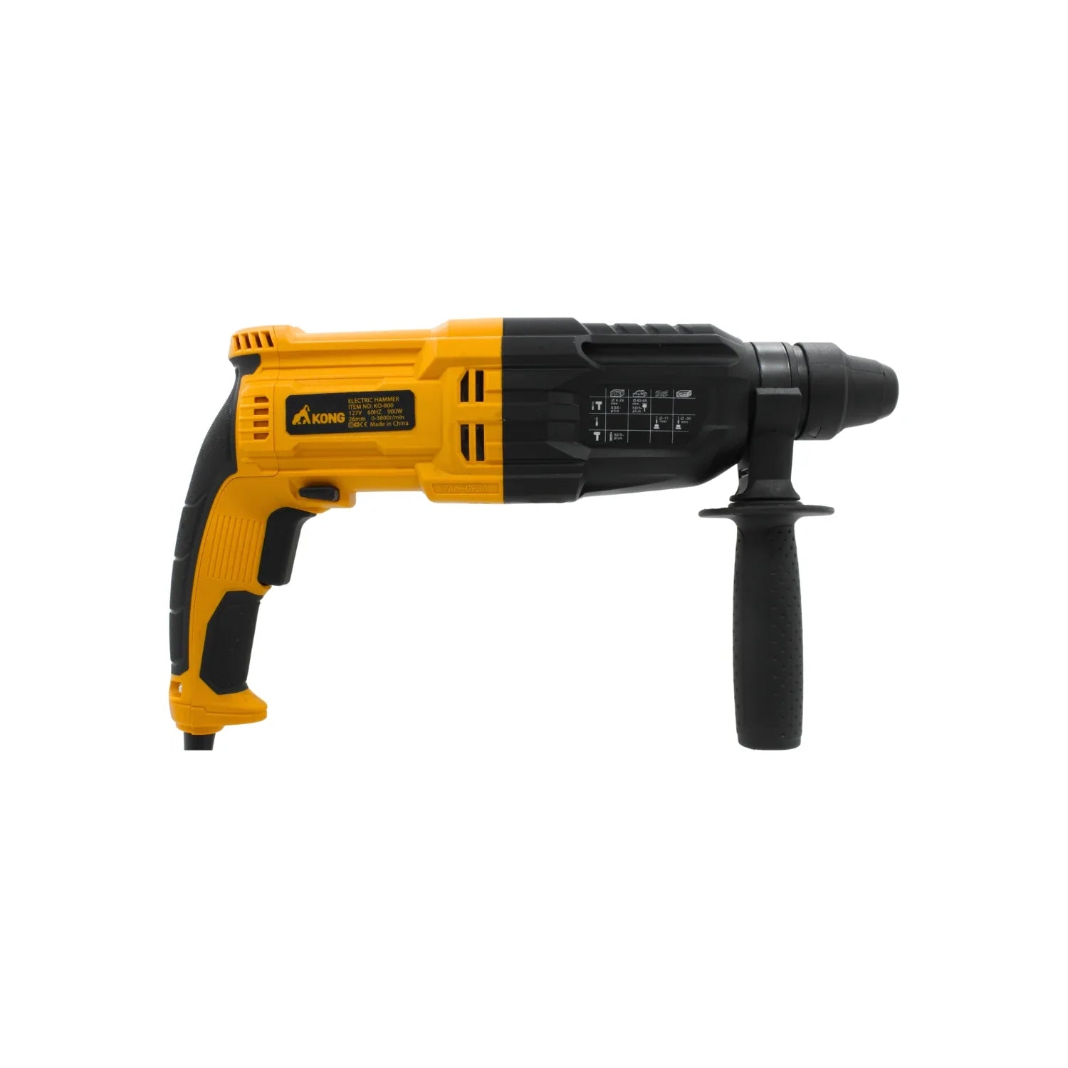 Kong KO-800 es un martillo perforador electroneumático ideal para tareas generales de construcción y remodelación. Con motor de 900 W y velocidad de hasta 4,000 rpm, ofrece tres modos de operación (taladro, rotomartillo y demoledor). Su sistema SDS-Plus permite cambios rápidos de broca, mientras su diseño robusto y empuñadura ergonómica facilitan el trabajo prolongado.
