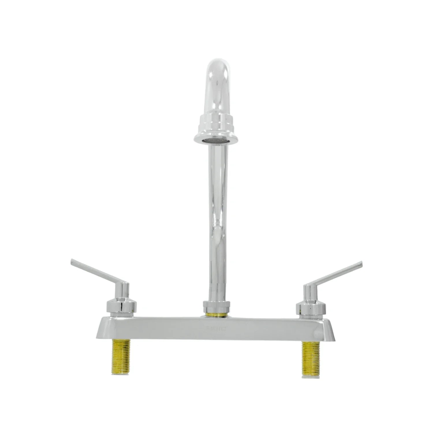 Mezcladora Fidic F8509 para fregadero de 8 pulgadas con cuello rígido y doble maneral, recomendada para cocinas que requieren flujo constante, control manual de temperatura y acabado cromado de alta resistencia