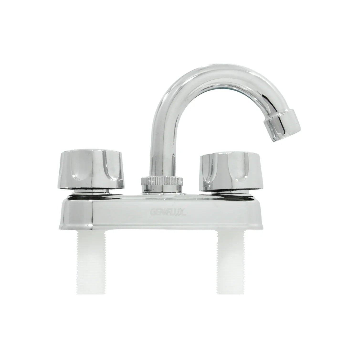 Mezcladora Genflux MZLA120PLCB para lavabo de 4", fabricada en cuerpo de plástico ABS con acabado cromo. Sistema de doble maneral redondo, con cartucho cerámico de 1/4 de vuelta. Funciona con baja presión. Incluye empaques, tuercas y arandelas para instalación rápida.
