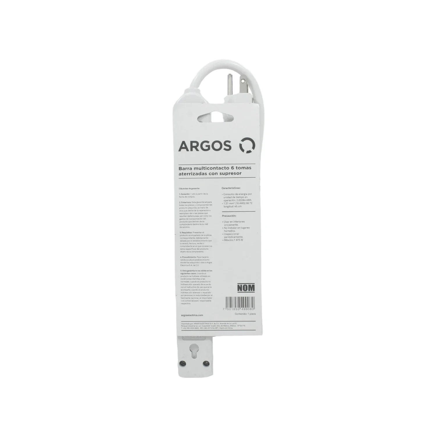 Diseñado para proteger tus dispositivos contra variaciones de voltaje, el multicontacto Argos 9700250 permite conectar hasta seis equipos eléctricos al mismo tiempo. Su supresor de picos integrado brinda seguridad adicional en oficinas, talleres o espacios domésticos con alta demanda energética. Ideal para instalaciones que requieren distribución confiable y protección activa.