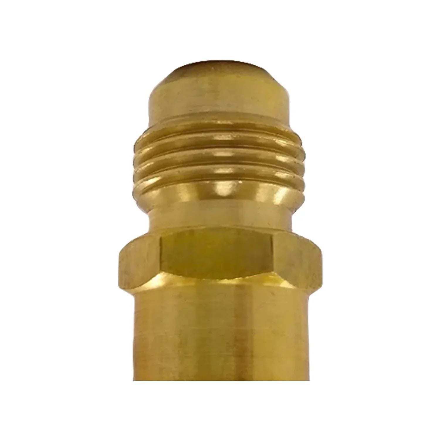 El niple campana Aleamex AG-NC1006 permite unir tuberías con rosca Flare de 3/8" a rosca NPT de 1/4". Fabricado en latón de alta calidad, ofrece resistencia a la corrosión, al desgaste y a las altas temperaturas. Su diseño garantiza un ajuste preciso y un sellado hermético sin necesidad de soldadura. Ideal para instalaciones de gas LP o natural en entornos domésticos y comerciales.