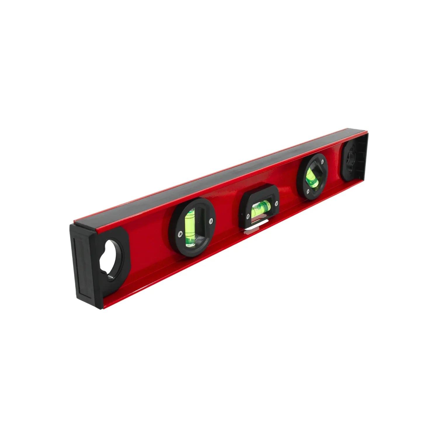 Nivel magnético Byp NIVPM14 de 14" en aluminio, con tres gotas (45°, 90°, 180°), banda magnética lateral y diseño tipo “I”. Alta precisión y resistencia para instalación, carpintería y obra ligera.