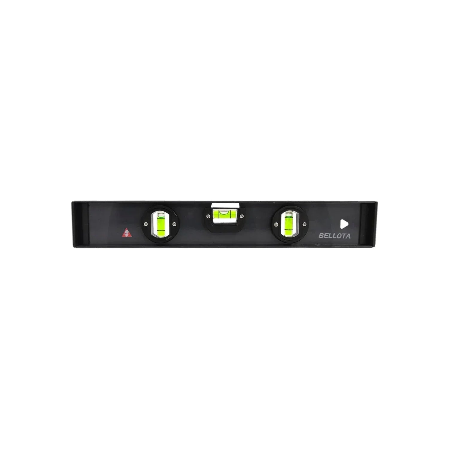 Nivel Bellota 750108B14 de 14" en aluminio, con tres gotas (0°, 45°, 90°), cuerpo ligero y extremos protegidos. Ideal para nivelación en obra y trabajos generales.