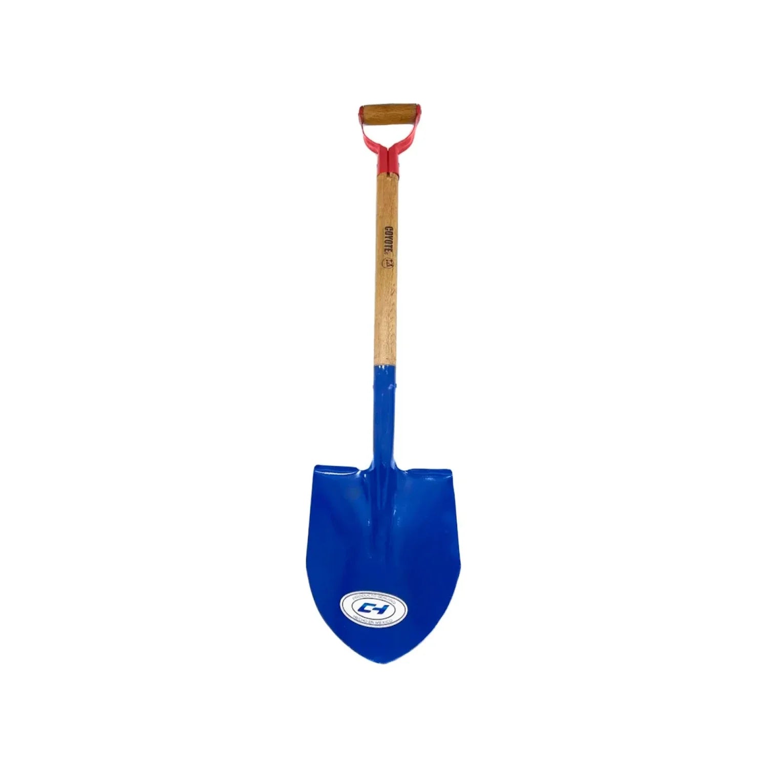Pala de punta CH 02-404 con hoja de acero SAE 1045, lámina calibre 16 y puño de madera tipo “Y”. Cabo de encino de 36", hombros doblados y diseño ergonómico para excavación, zanjeo y carga en obra y ferretería.