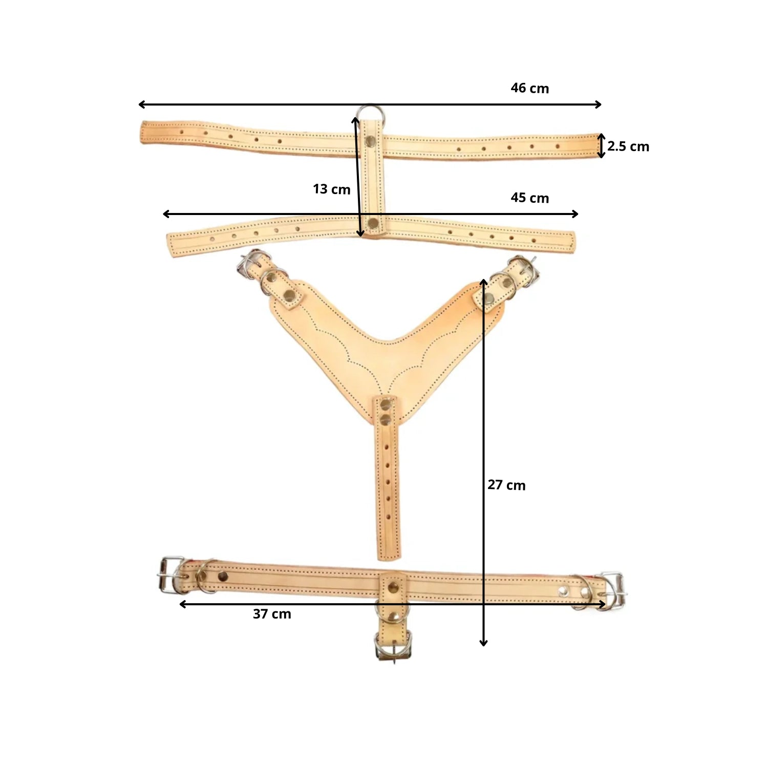 Pechera mediana para perro elaborada en cuero, ideal para razas mediana. Costuras reforzadas, hebillas metálicas y ajuste cómodo al pecho. Proporciona control, seguridad y estilo en paseos diarios, con diseño clásico y duradero.