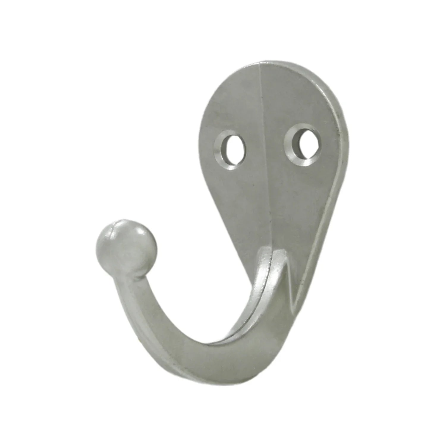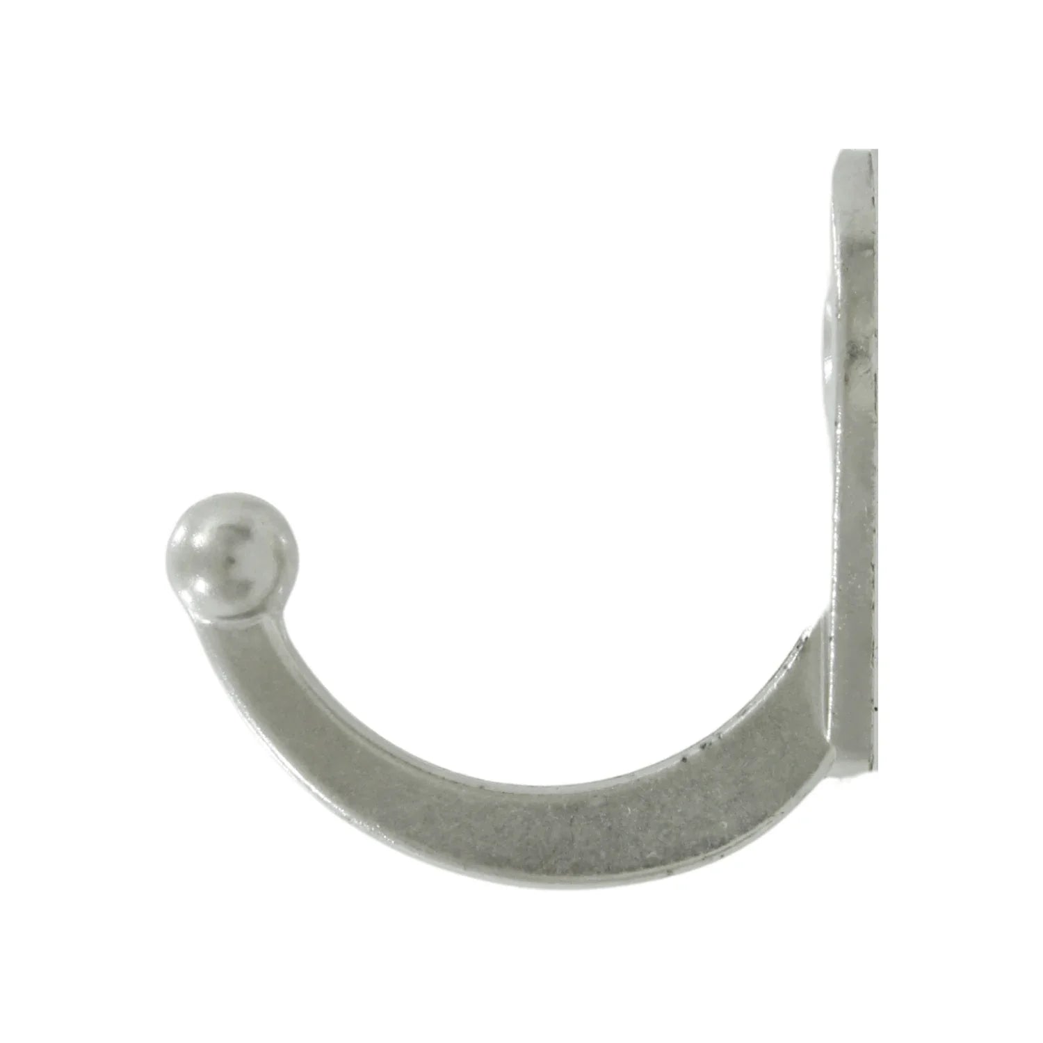 Gancho sencillo tipo perchero Handy Home 1830 en acabado níquel satinado, fabricado en zamac de alta resistencia. Su diseño clásico y discreto lo hace ideal para colgar ropa, accesorios o bolsos en muros, puertas o mobiliario.