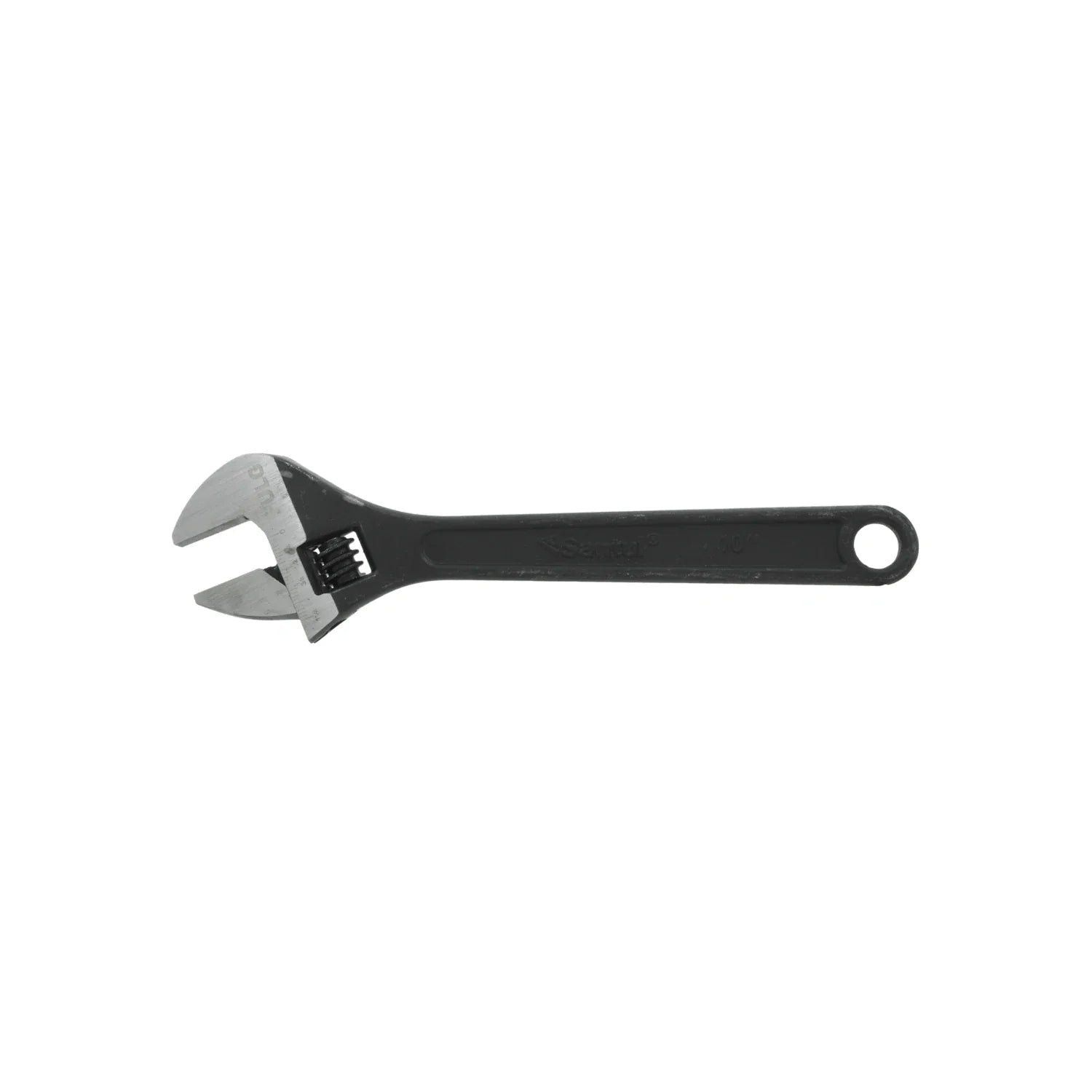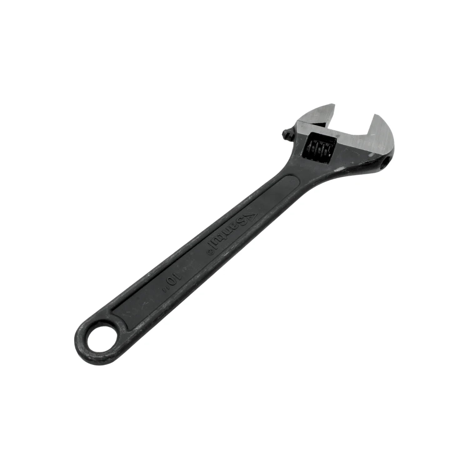 Llave ajustable tipo perico Santul 9205 de 10 pulgadas, fabricada en acero al carbono con acabado pavonado. Su diseño robusto y mordazas forjadas permiten ajustar tuercas, tornillos y tubos con precisión. Ideal para plomería, herrería, mantenimiento industrial y uso doméstico.