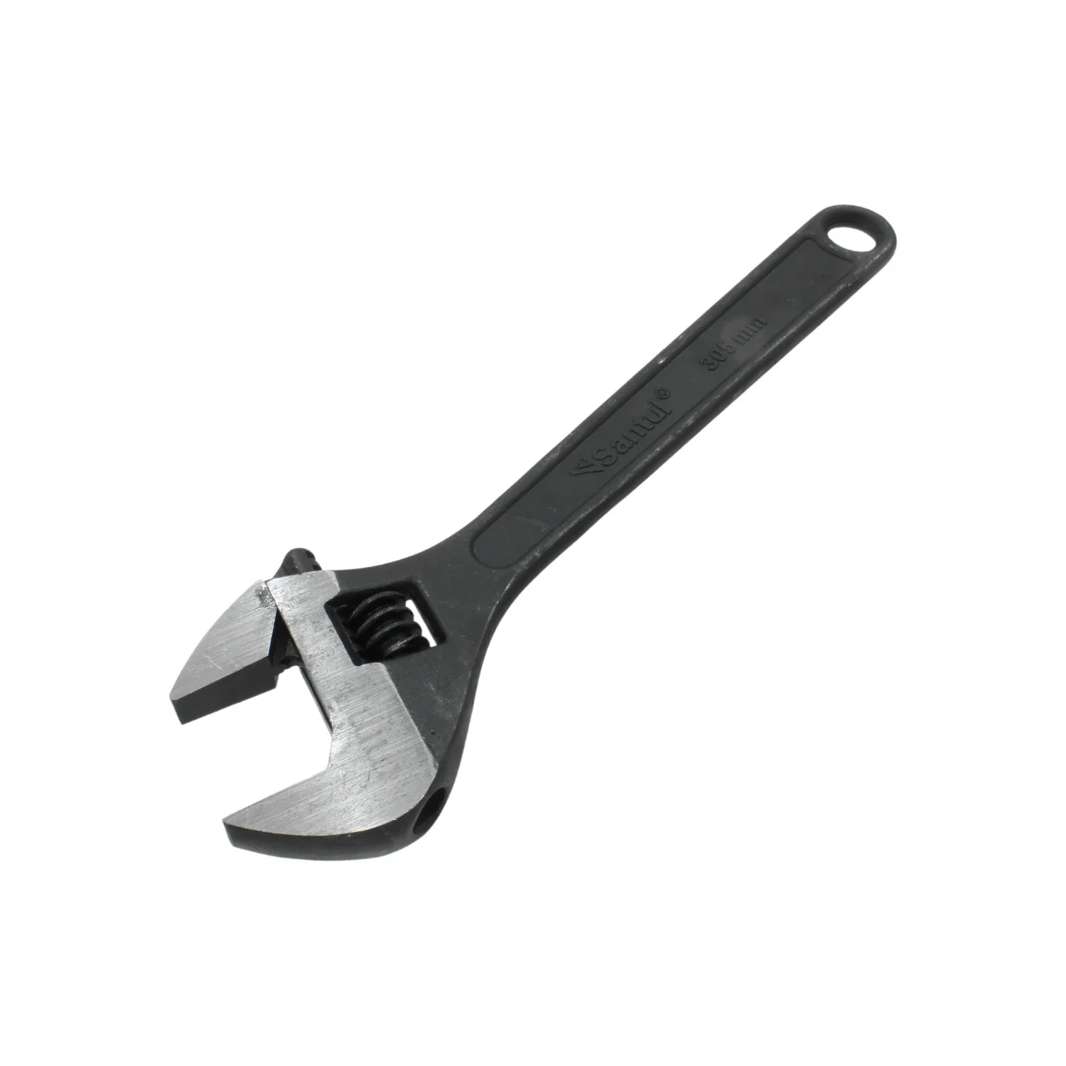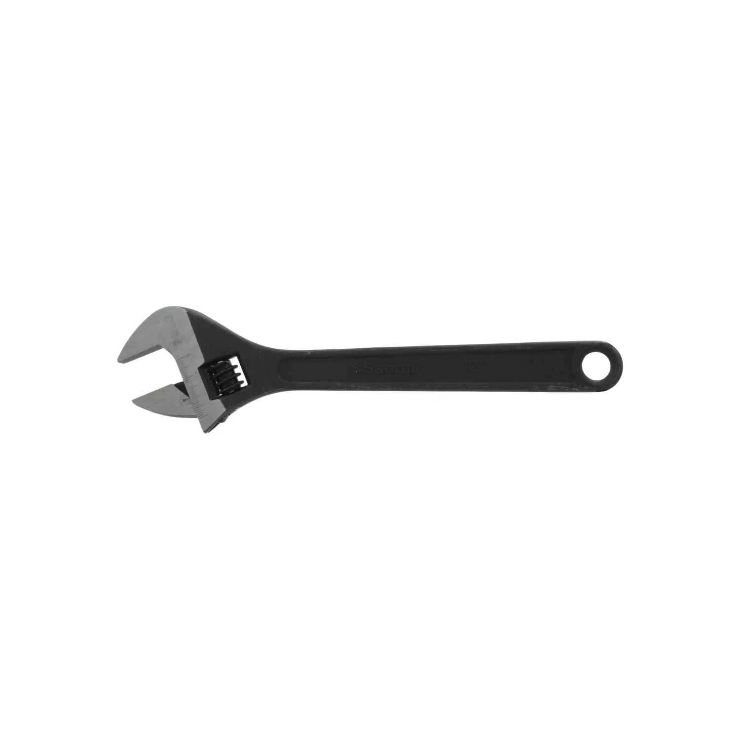 Llave ajustable tipo perico Santul 9206 de 12 pulgadas, fabricada en acero al carbono con acabado pavonado. Su diseño robusto y mordazas forjadas permiten ajustar tuercas, tornillos y tubos con precisión. Apertura máxima de 33 mm, con anillo de ajuste integrado al mango. Ideal para plomería, herrería, mantenimiento industrial y uso doméstico.