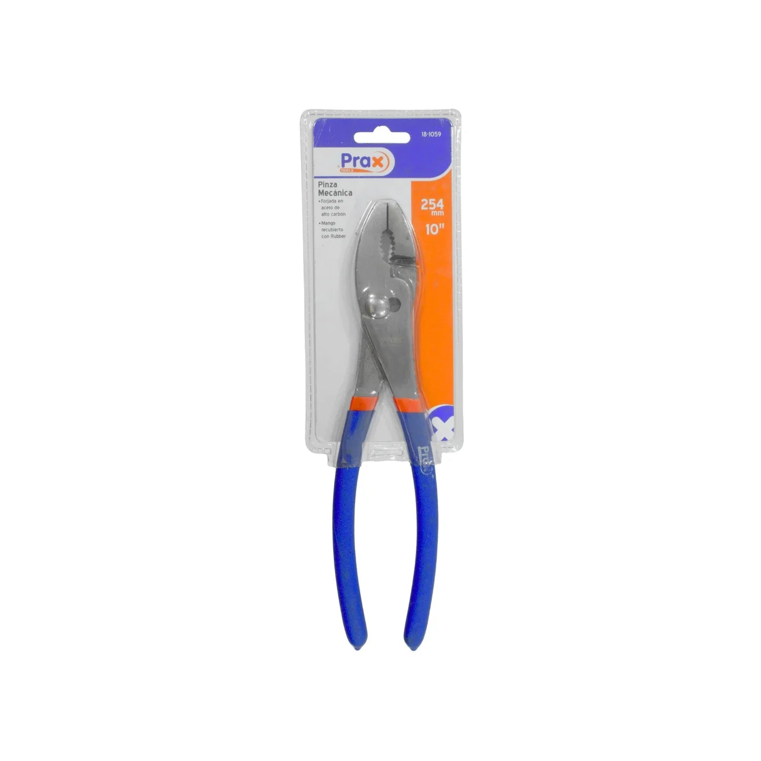 Pinza de chofer Prax 181059 de 10 pulgadas, fabricada en acero al carbón con acabado pulido. Mango recubierto para mayor comodidad y agarre seguro. Ideal para trabajos mecánicos, eléctricos y de sujeción general. Diseño robusto y funcional para uso profesional.