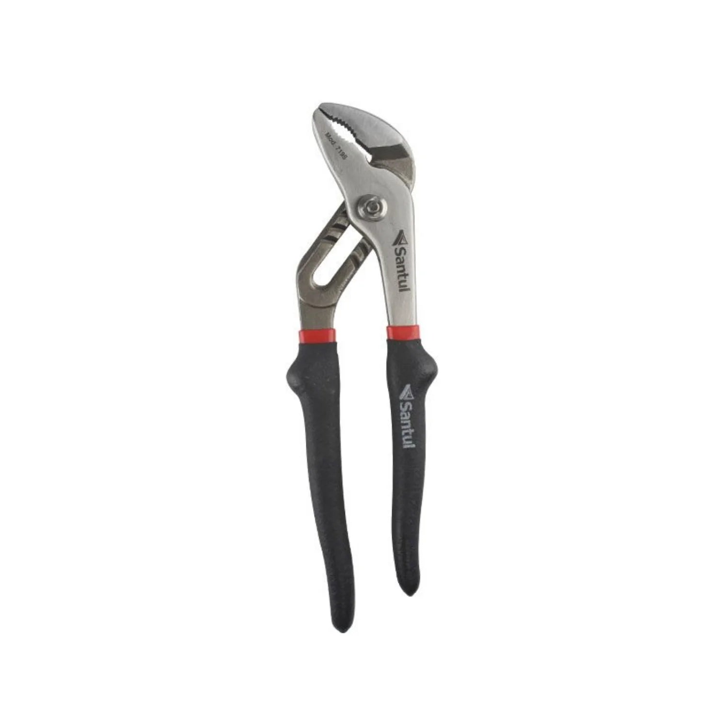 Pinza profesional Santul 7195 de 10 pulgadas con mordazas forjadas y mango de vinil dieléctrico, diseñada para corte y sujeción de cableado en instalaciones eléctricas, armado de tableros y mantenimiento industrial que requieren máxima apertura y resistencia al desgaste.