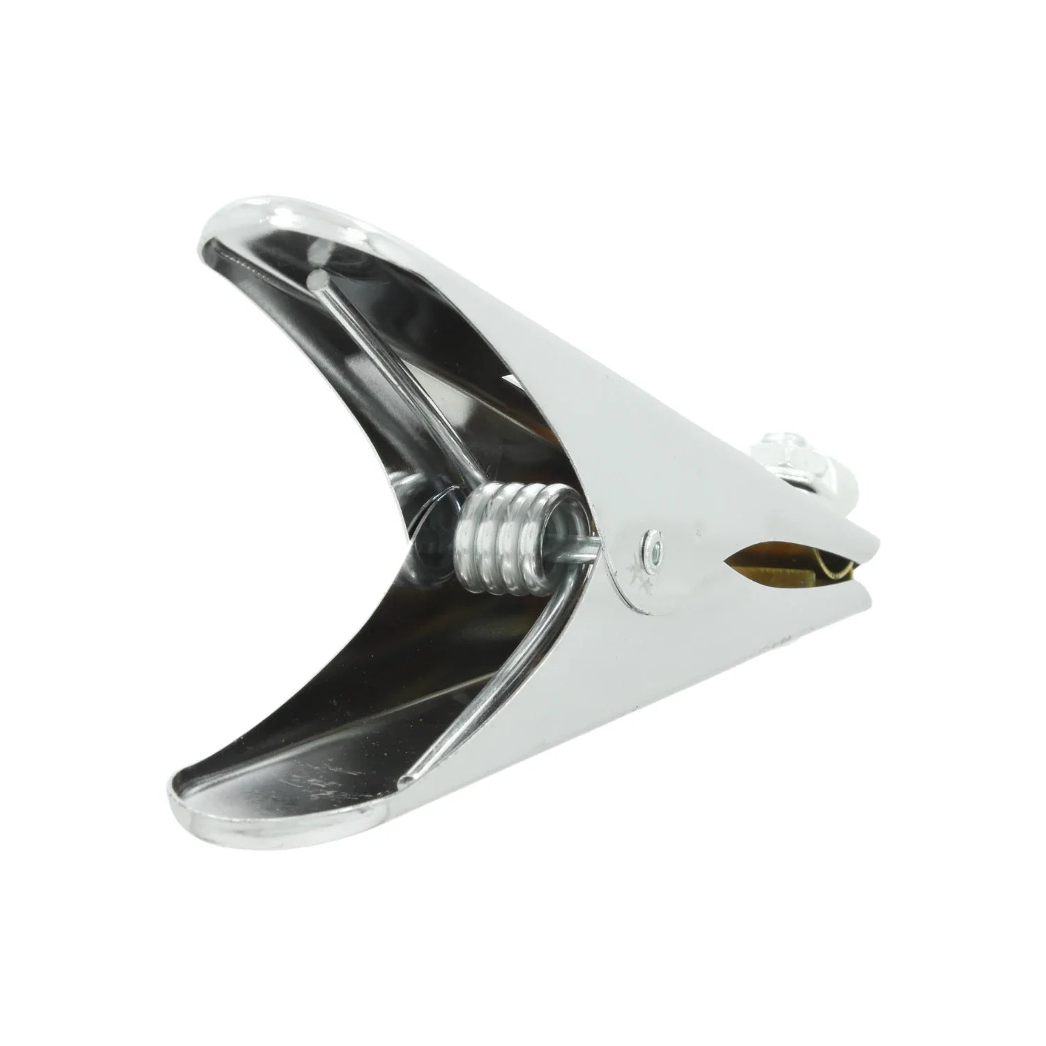Pinza para tierra Keer 8327 de 500 amperios, diseñada para conexiones eléctricas seguras en entornos industriales y de alta demanda. Fabricada con mordazas dentadas de latón y cubiertas reforzadas de fibra de vidrio, ofrece excelente agarre, resistencia al desgaste y protección contra impactos. Ideal para trabajos de soldadura y conexión a tierra con cable