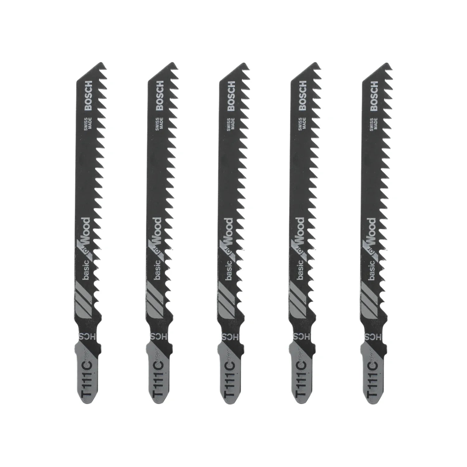 El juego de 5 seguetas Bosch T111C fabricadas en HCS (acero con alto contenido de carbono) está diseñado para cortes rápidos y limpios en madera blanda, aglomerado y otros materiales de madera. Su zanco tipo "T" garantiza un acople firme y seguro en caladoras compatibles, proporcionando un desempeño confiable para trabajos de carpintería y bricolaje.