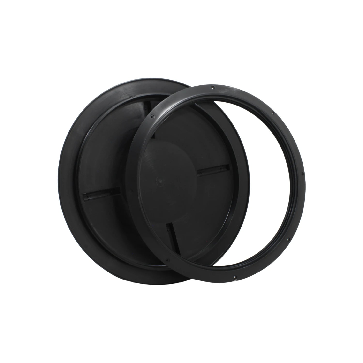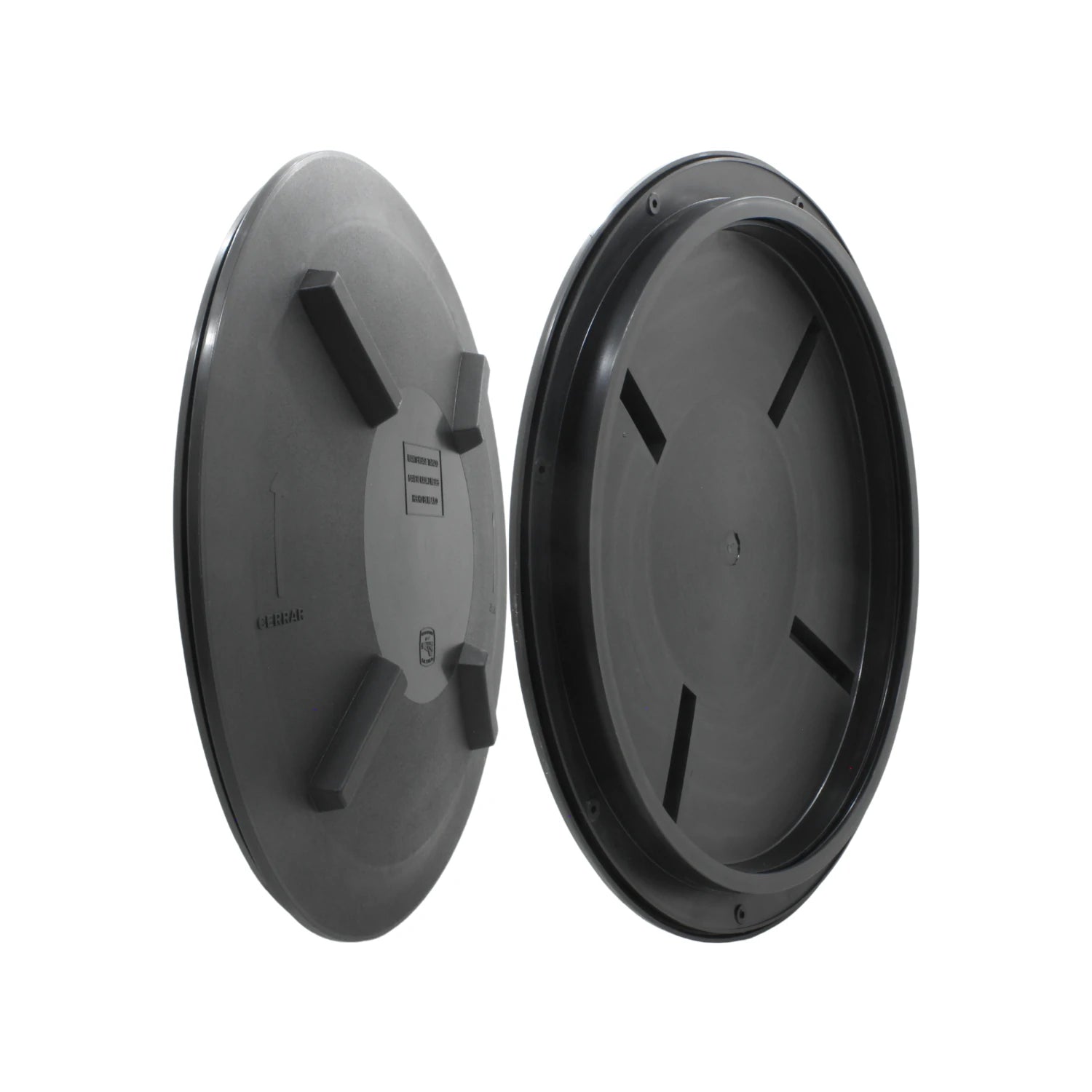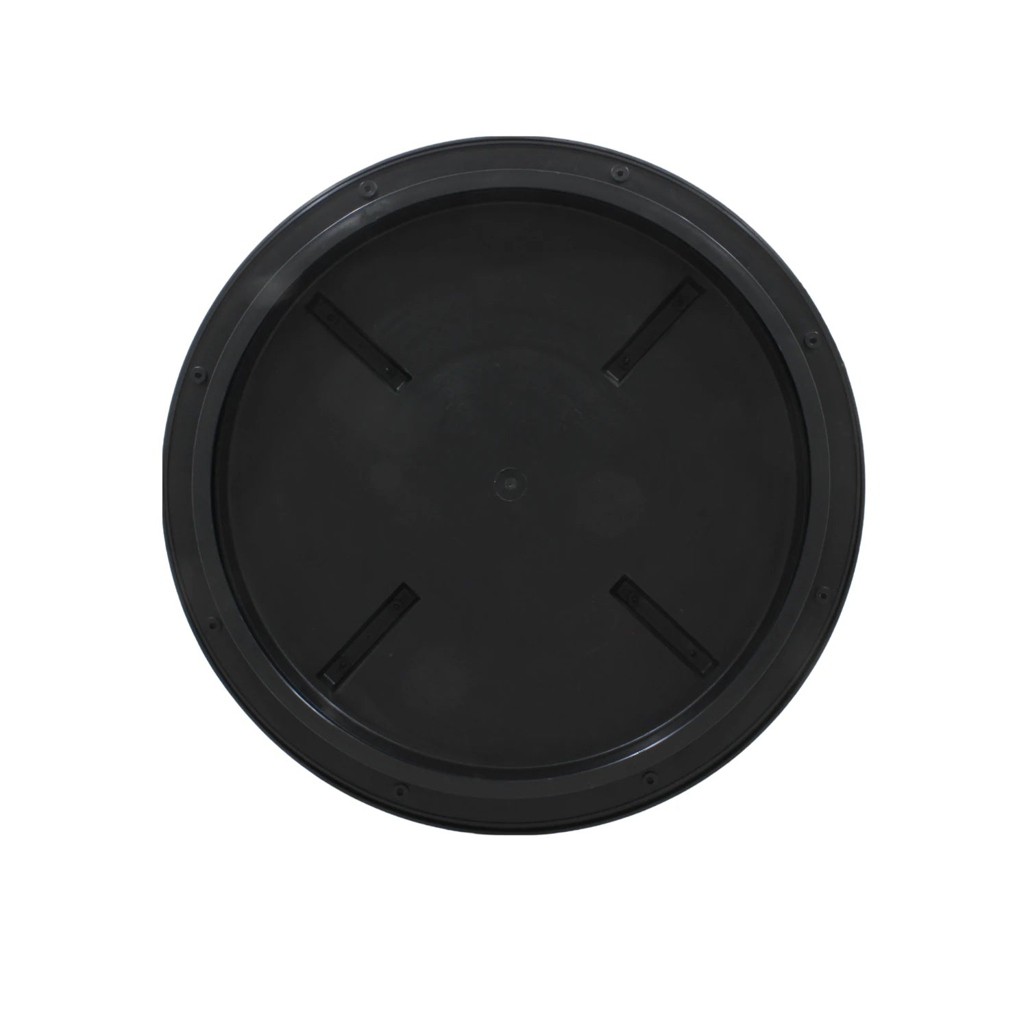 La tapa para tinaco con aro tipo rosca está fabricada en plástico ABS resistente y diseñada con cuatro manijas cruzadas para facilitar el cierre roscado. Compatible con tinacos estándar (54 cm de diámetro), incluye aro de sujeción y flechas de giro para indicar sentido de cierre y apertura.