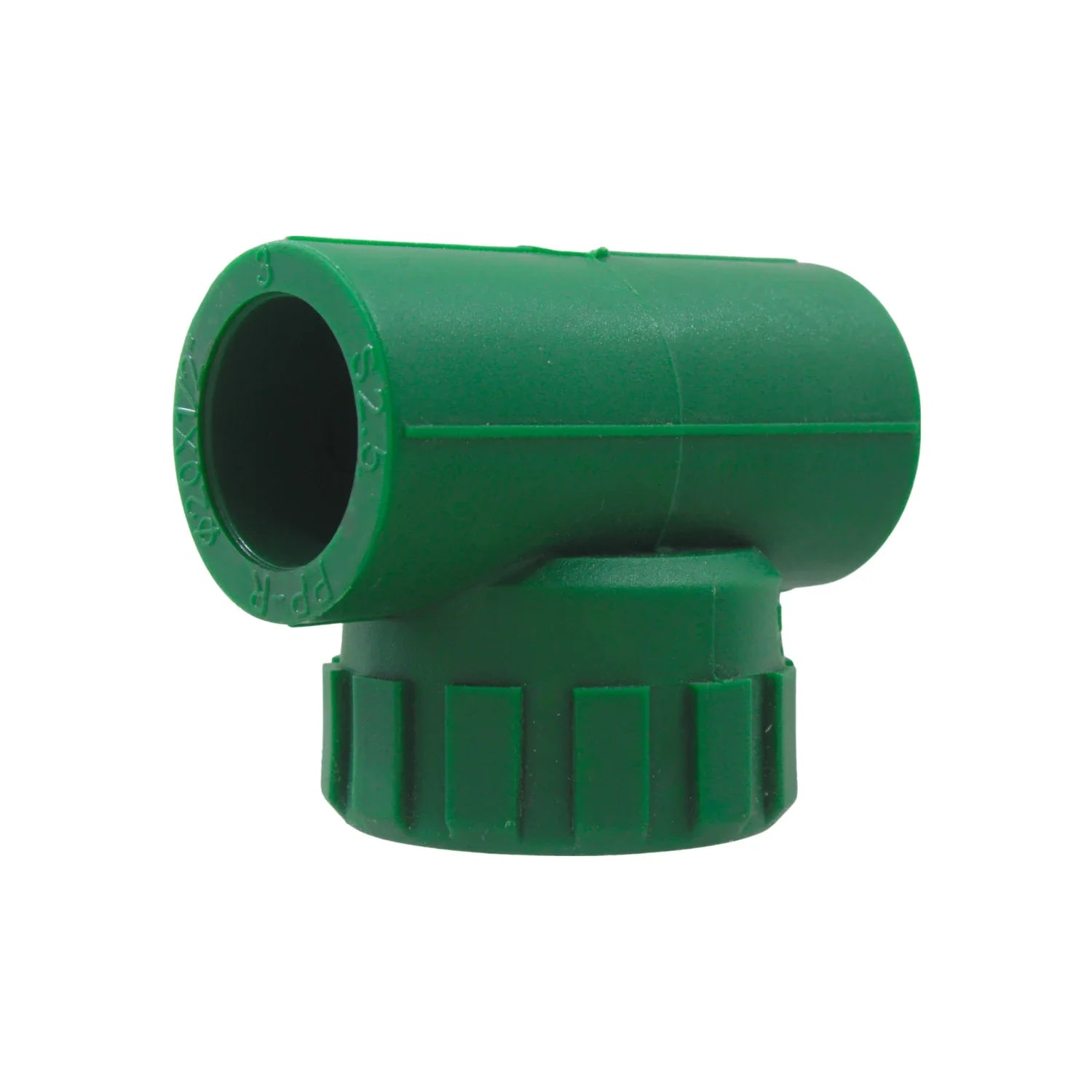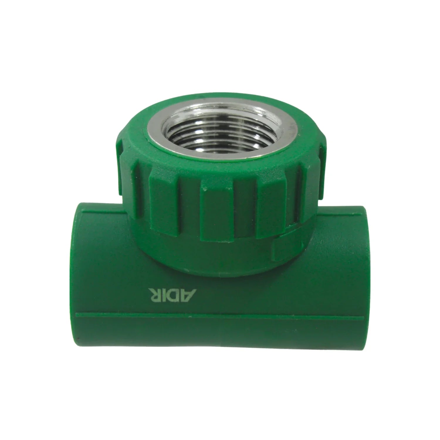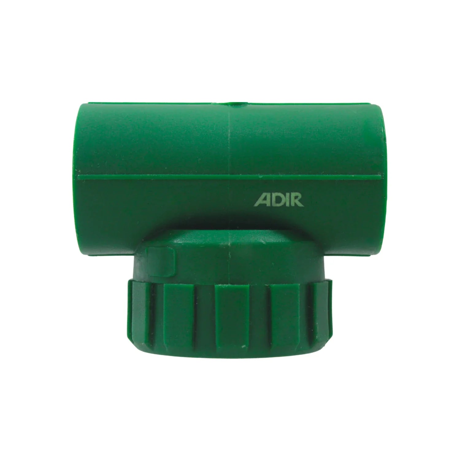 La Tee rosca central hembra PPR Adir 7137 de 20 mm x 1/2" está fabricada con polipropileno PPR, ofreciendo gran resistencia a presión y temperatura, ideal para unir tuberías PPR con conexiones roscadas metálicas o plásticas