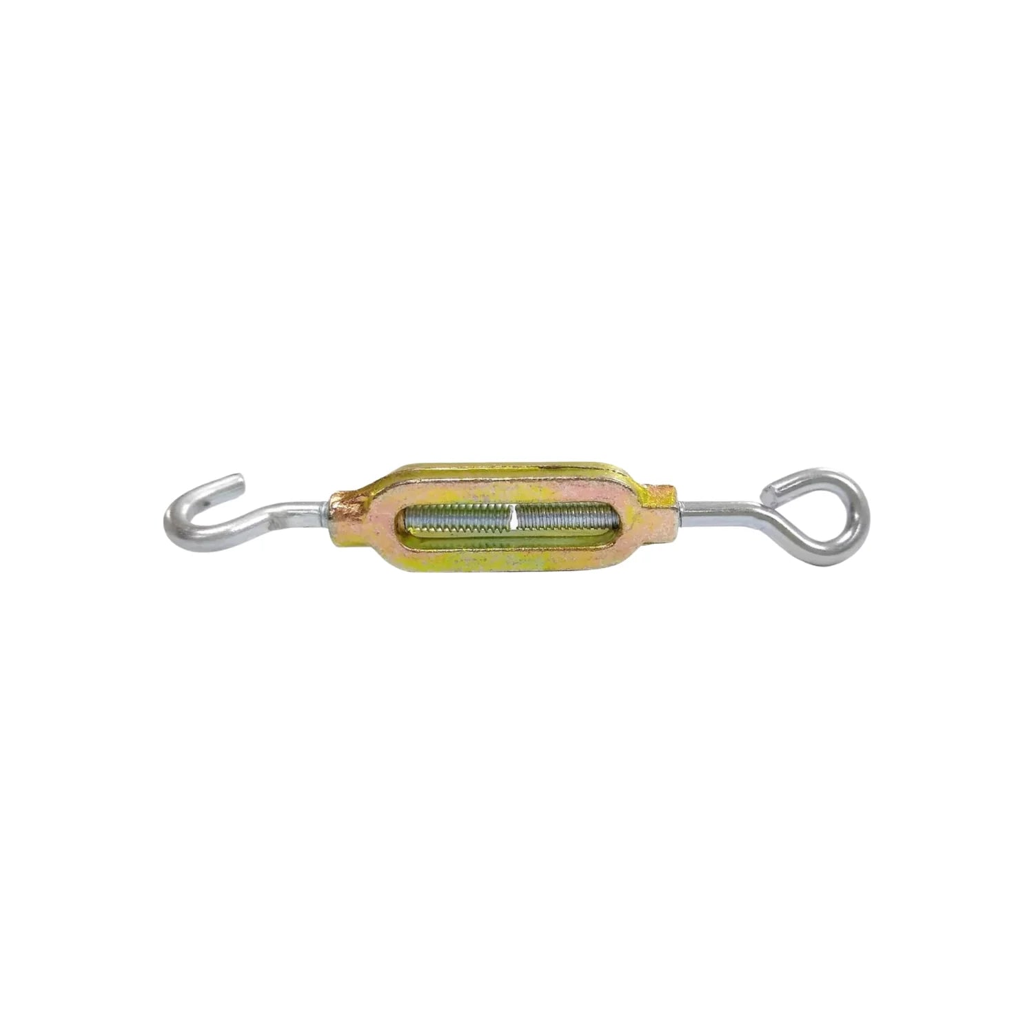 El tensor de gancho y argolla 3/16″ dorado económico está fabricado con un cuerpo metálico de acero al carbón galvanizado. Cuenta con gancho y argolla sólidos para tensar cables, cadenas o cuerdas con una capacidad de carga de hasta 40 kg.